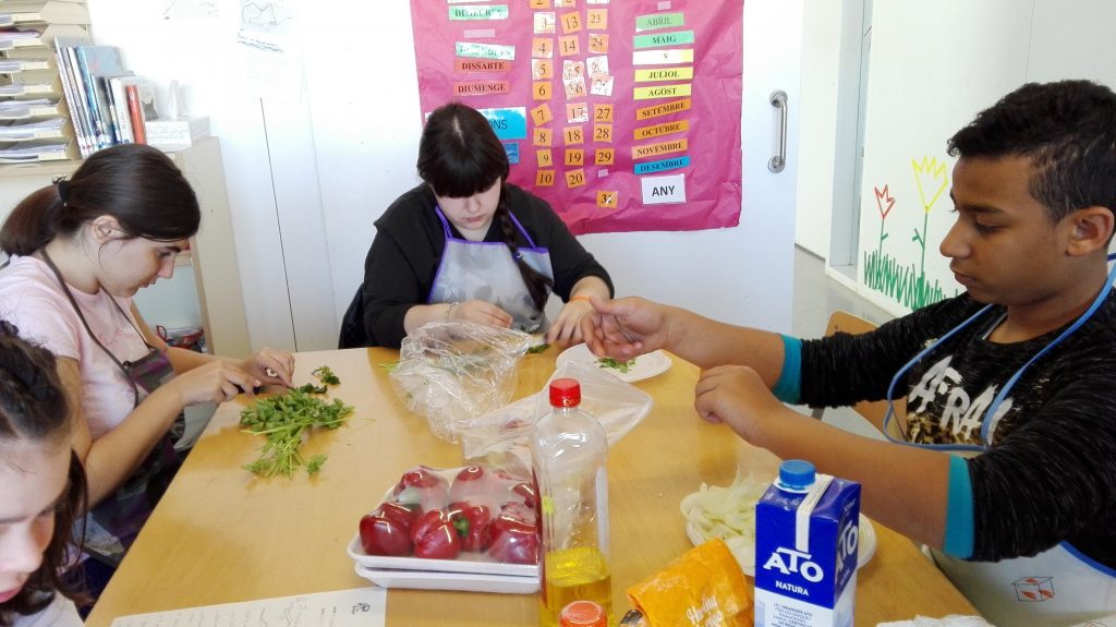 Els alumnes del Com anar sols per la vida han practicat més receptes: arròs amb pollastre i faves de l’hort, menjablanc, coca amb recapte i meló pernil. Per llepar-se els dits!
