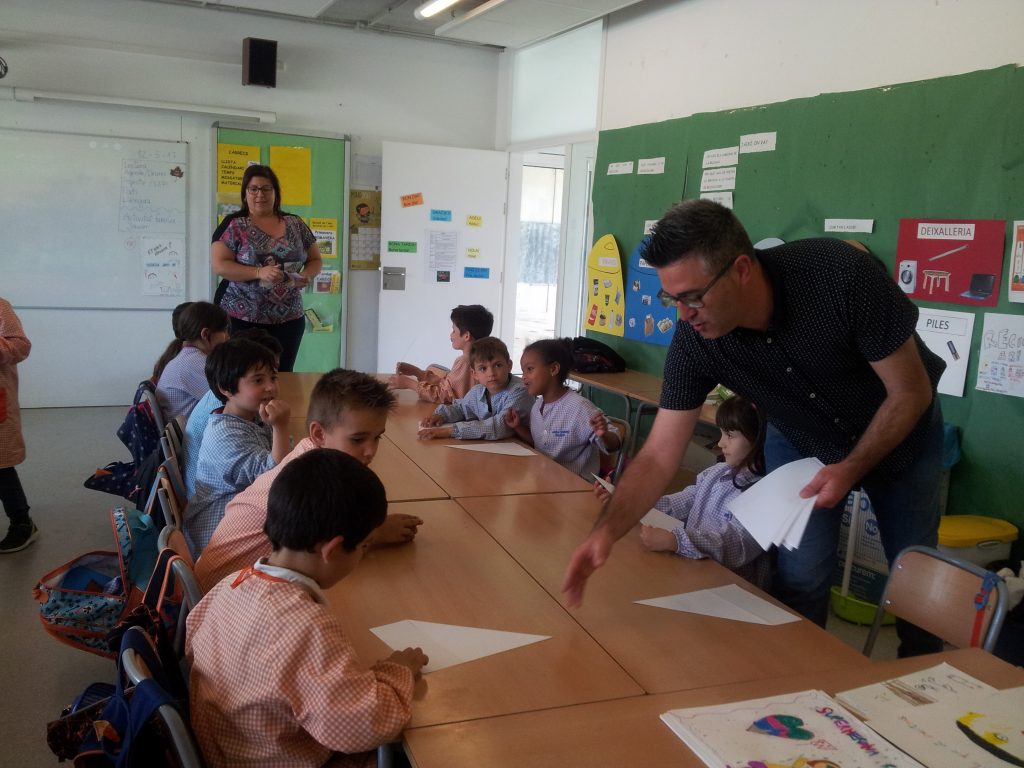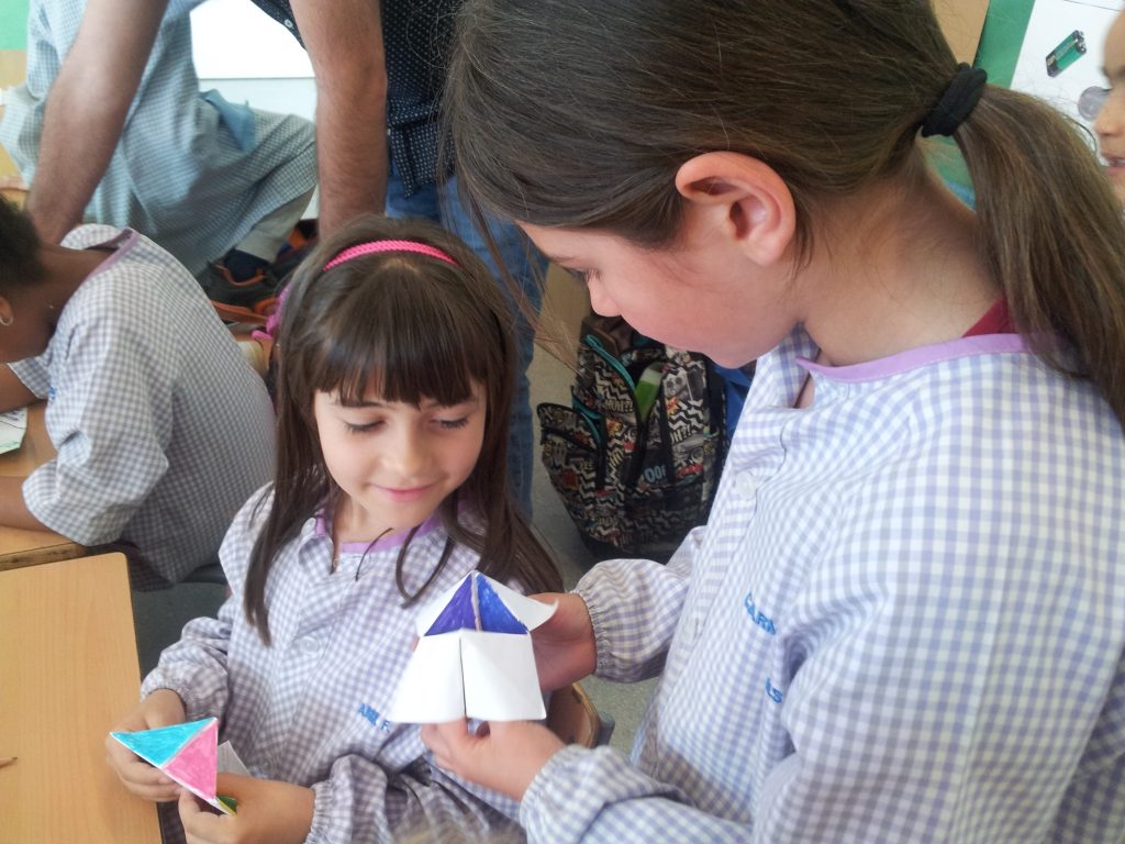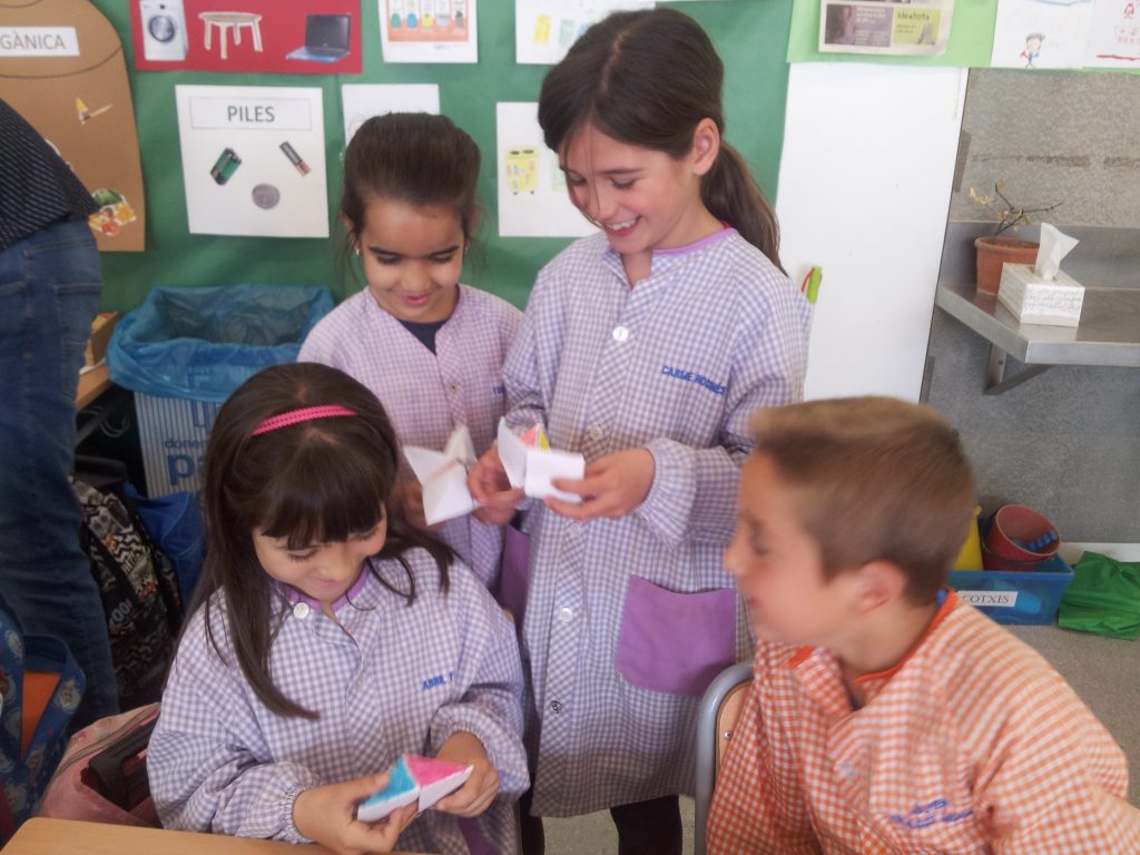 Fer-nos un joc de paper: Els quatre sabaters! Vam pintar i aprendre una mica de papiroflèxia. Dins vam escriure paraules boniques. Ho podeu provar a casa!