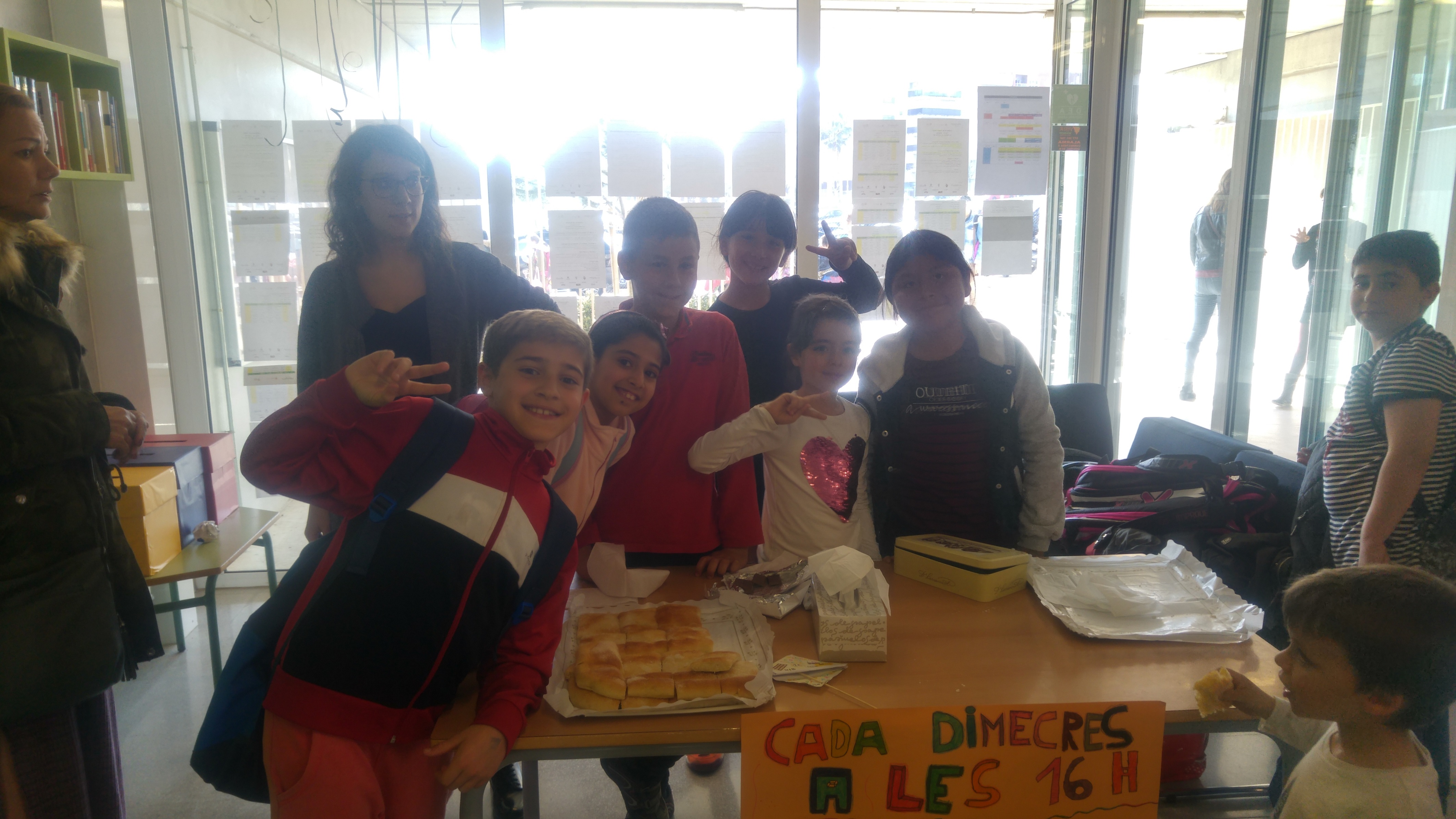 Els alumnes i tutors de 4rt hem muntat una taula a l’entrada de l’escola per vendre coca i xocolata a 1€.