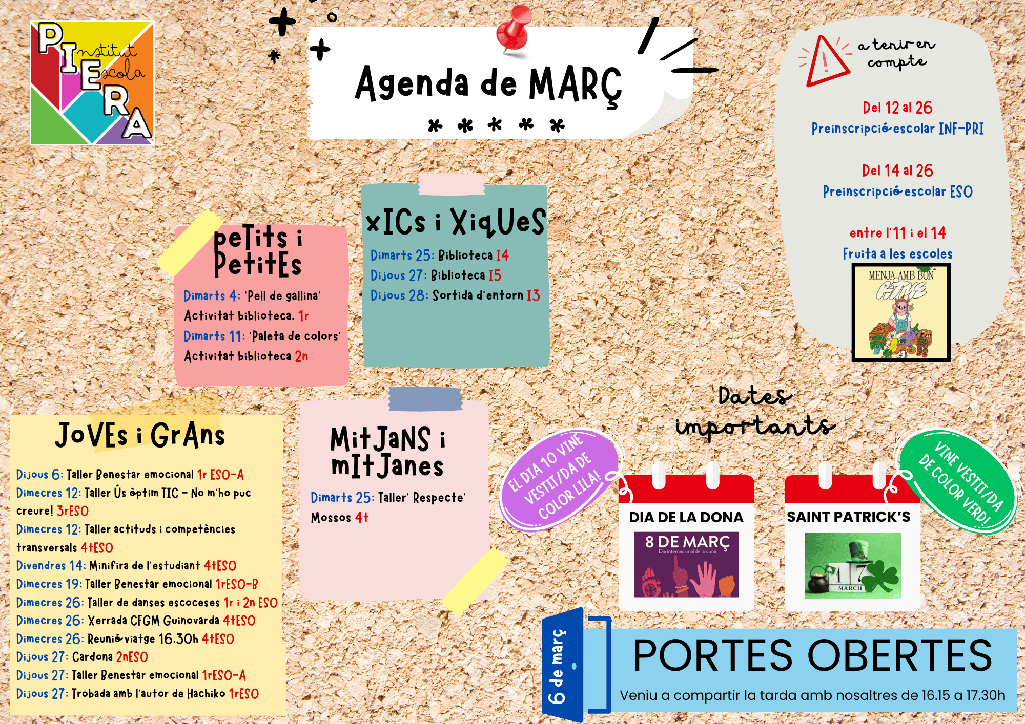 us informem que el dijous 6 de març realitzarem les Portes Obertes per al curs 25-26.