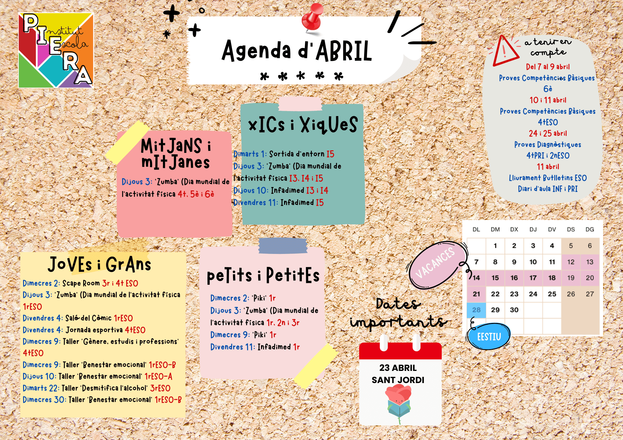 Famílies, ja tenim aquí l’agenda d’abril!