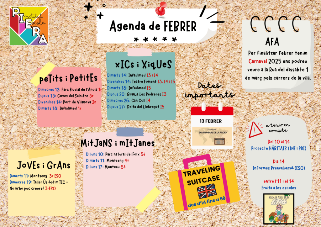 Agenda d’activitats del mes de febrer de 2025 Adrià Galimany Palau01/02/25 Us adjuntem l’agenda d’activitats de l’Institut Escola Piera d’aquest mes de febrer!