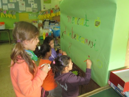 Per Nadal a les classes de segon vam fer un mercat d’intercanvi. L’activitat va consistir en portar de casa un objecte, joguina… que no es feia servir i regalar-ho a un altre company. La condició important era que no es podia comprar. Tots els regalets els van encantar !!!
