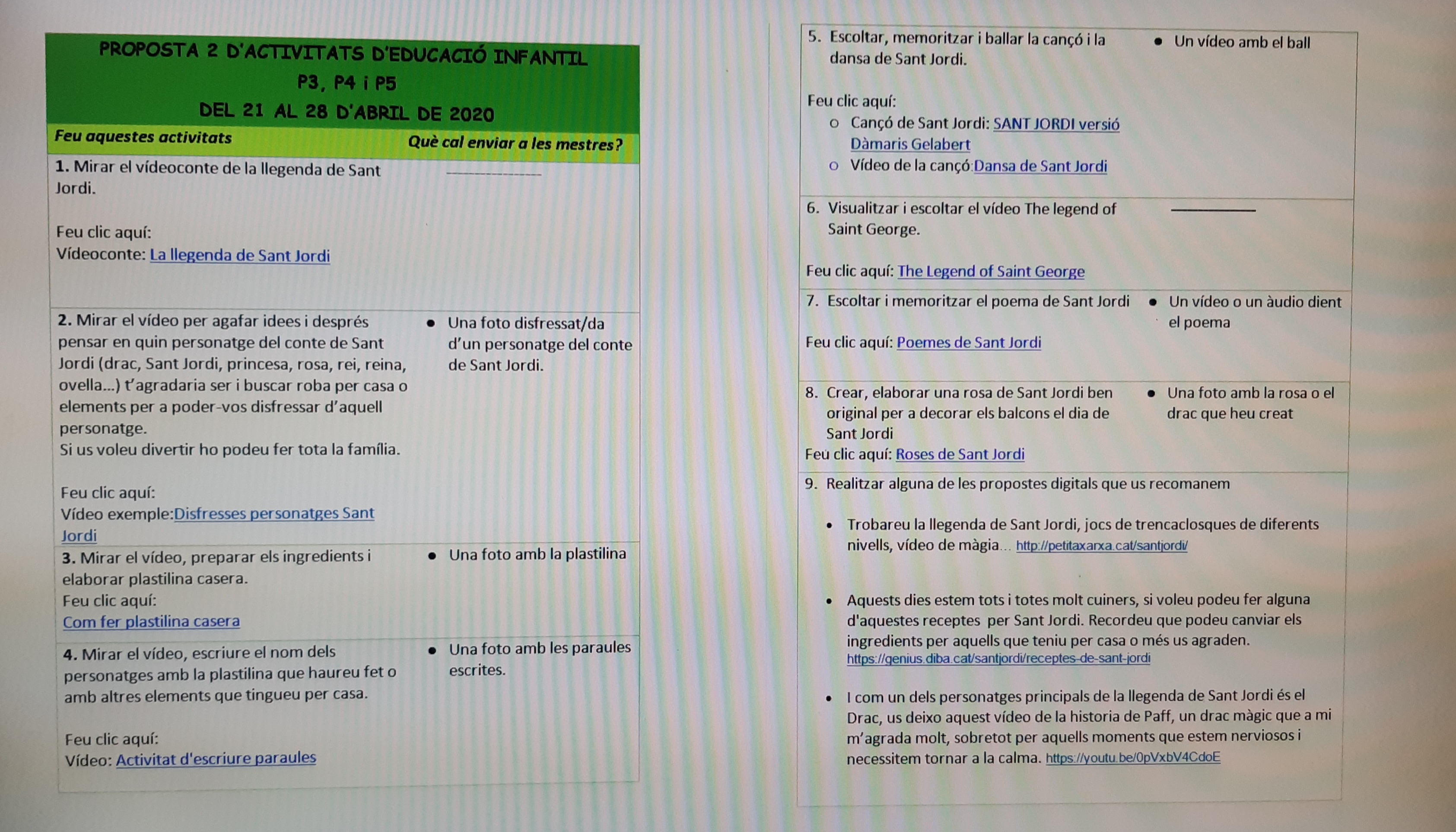 Activitats 2a setmana a partir del conte: La llegenda de Sant Jordi. Clica aquí