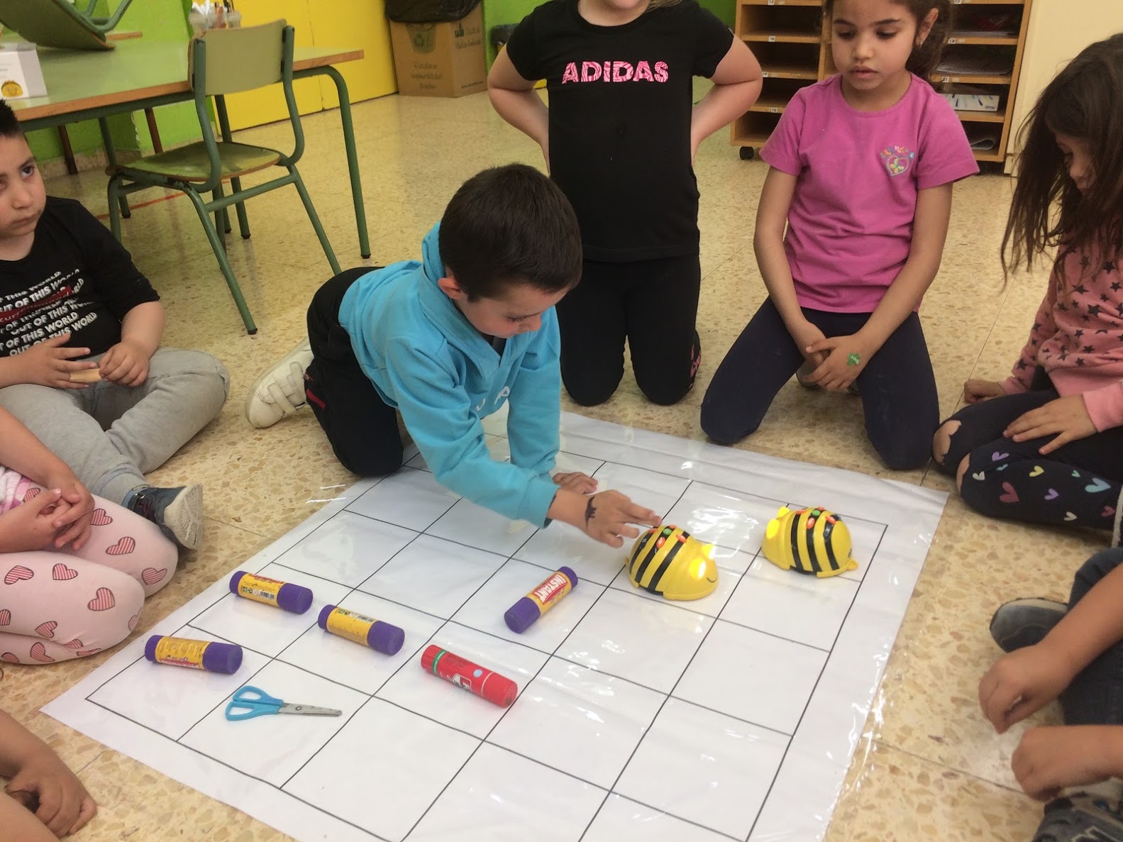 Ens plantejàvem el repte d’indicar-li el camí per arribar fins les tissores superant les barreres dels pegaments i sense xocar amb l’altra abelleta.