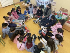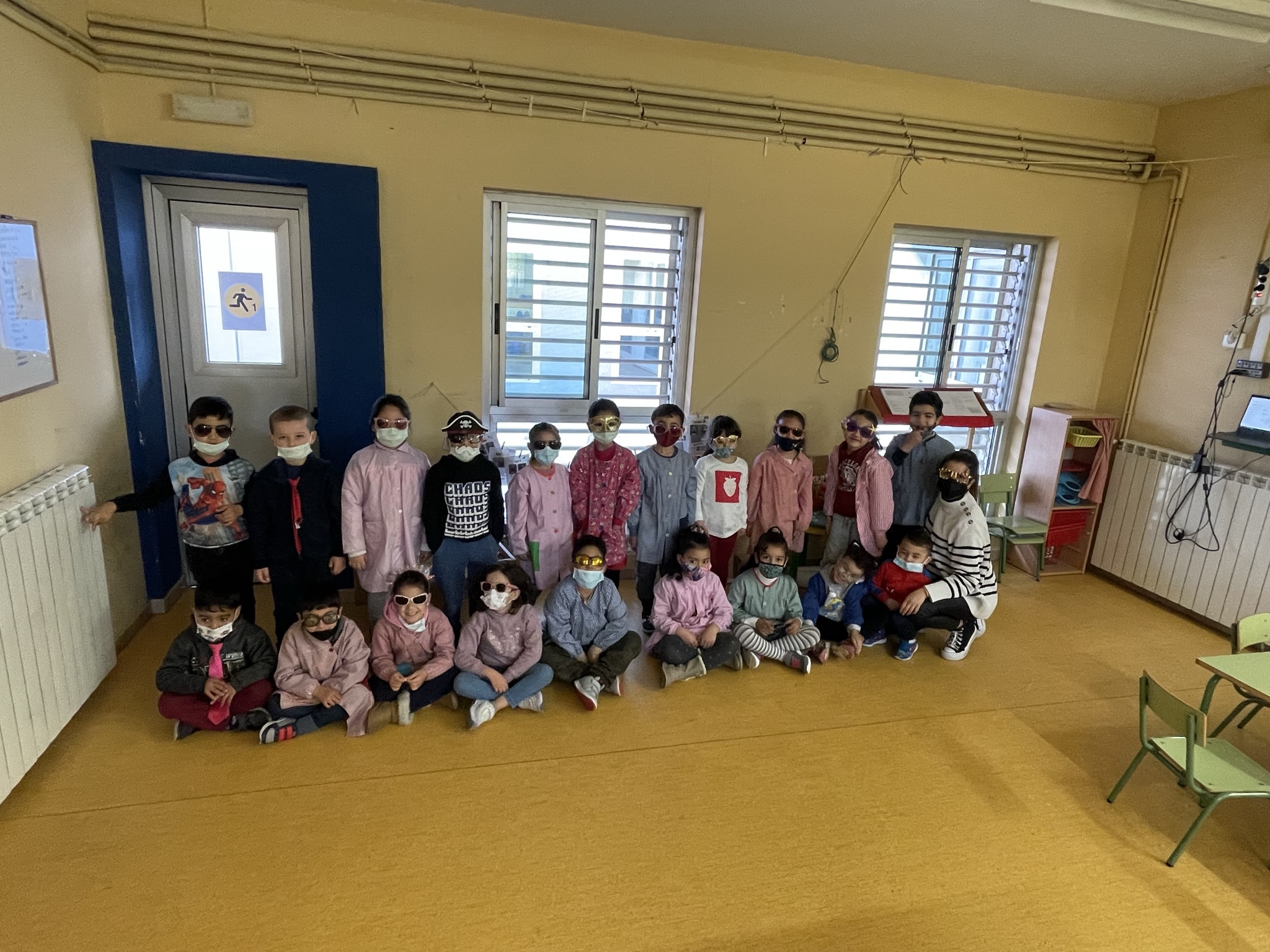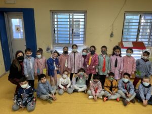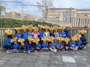 El dilluns, vam haver de portar un mitjó de cada, el dimarts amb corbates, el dimecres amb ulleres i els dijous vestits de blau! I per acabar… el divendres els nens i nenes de p5 ens hem disfressat de TRIBU AFRICANA! Ens ho hem passat molt bé ballant com les tribus!! A més a més, el dijous vam anar a menjar la truita al pati dels grans!