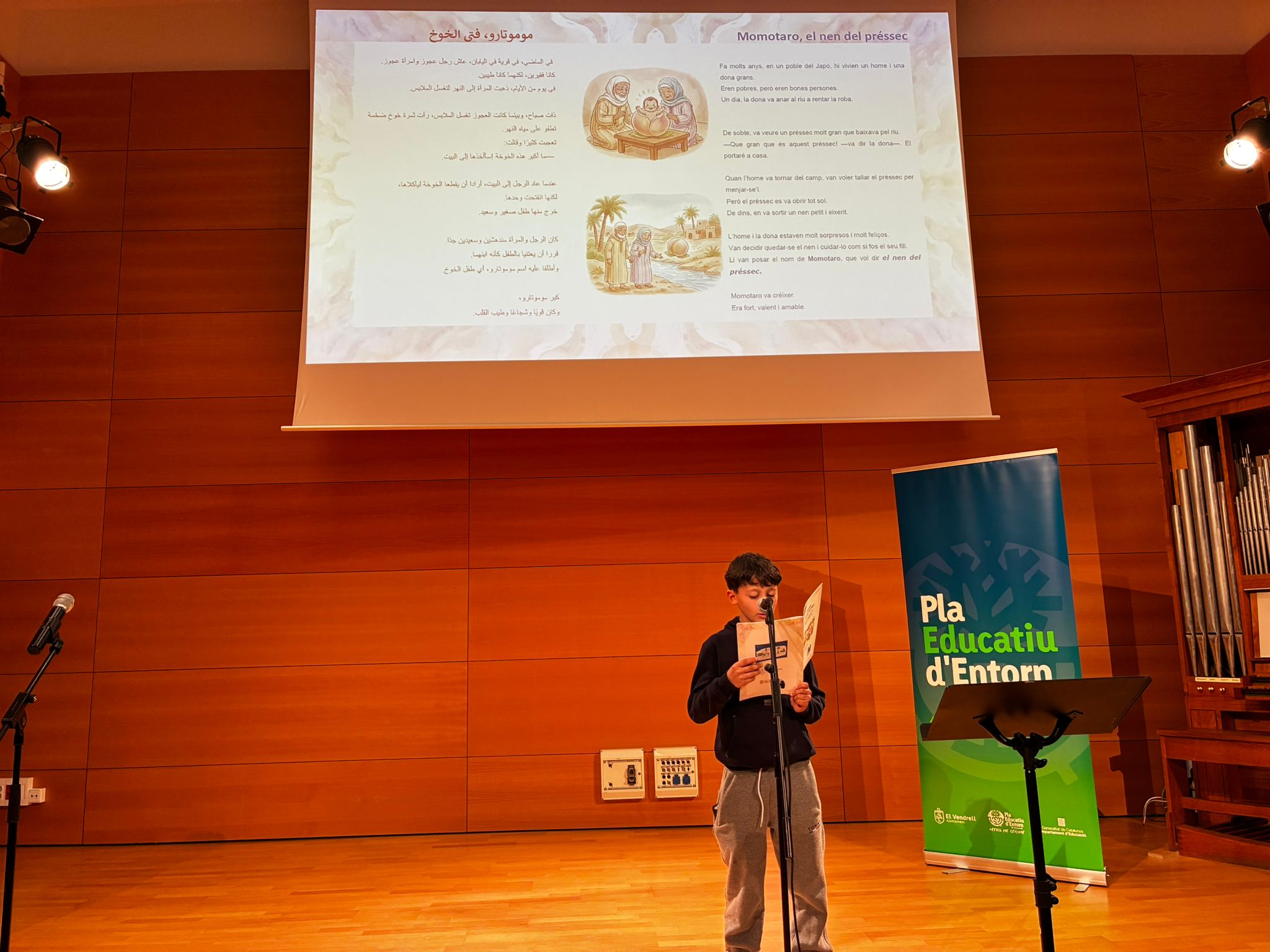 Amb motiu del Dia Mundial de les Llengües Maternes o d’Origen, dos alumnes de l’ESO de l’Institut, el passat dimecres van assistir a la 4a Jornada per la Llengua Materna llegint contes del seu país juntament amb altres alumnes de diferents centres educatius d’El Vendrell a l’Escola de Música Pau Casals.