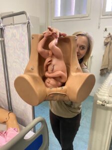 Then we were taken to visit the room where they practice and we observed a live practice. Afterwards, they showed us the material they use and some very realistic models of mothers and babies.
