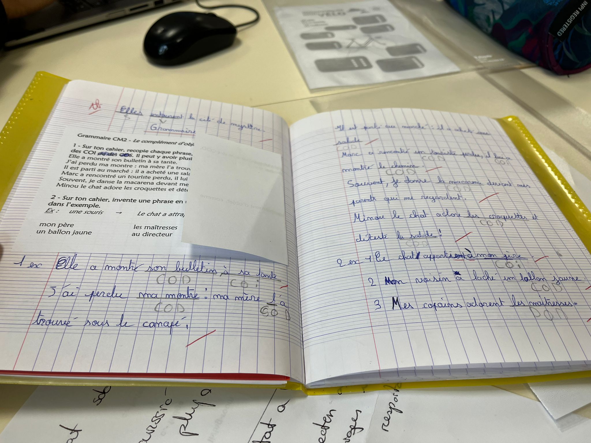 As soon as we got to school we saw flashes from a camera. This morning it was time to take the group photos of each of the classes. The teacher Marie explained that they take two types of photos: the first has pedagogical content, since within the classroom they were divided by groups of 3 or 4 students and each of these groups represented a historical moment: prehistory, Egypt, the Middle Ages and the French revolution. With these photos a chronological mural would be composed in order to use it in the geography and history classes.