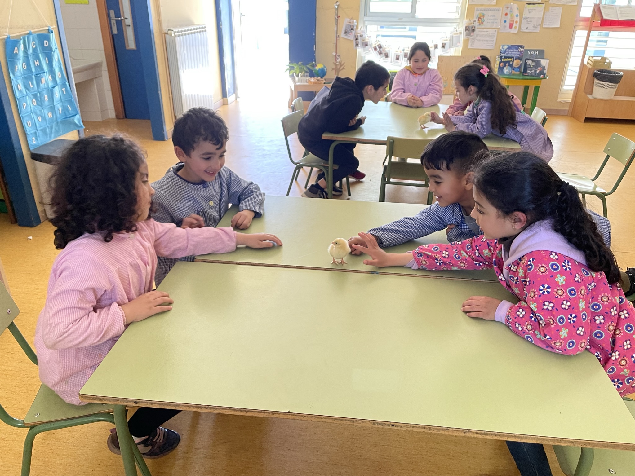Avui hem tingut una gran sorpresa!! L’Amanda de l’ESO ens ha vingut a buscar per ensenyar-nos els pollets que han nascut a la incubadora de la nostra escola! Hem tingut la sort de veure com els pollets comencen a trencar els ous amb el bec, i fins i tot hem vist com un d’ells acabava de néixer! Alguns d’ells, ja feia uns dies que havien nascut i hem pogut veure les seves plomes grogues, com caminen, com mengen… ha sigut molt emocionant! A la tarda, ens han vingut a visitar a la classe els pollets i els hem pogut tocar!!