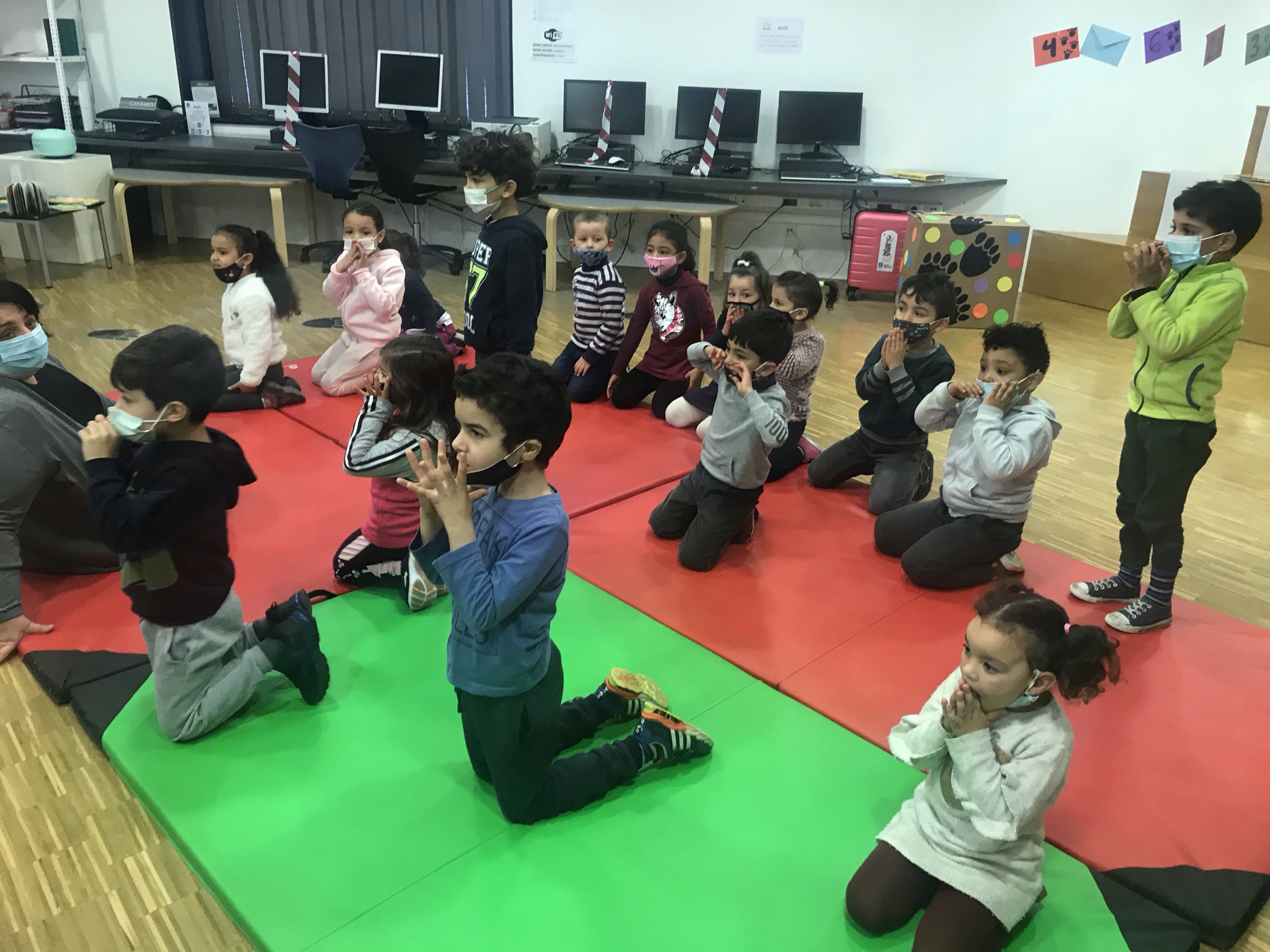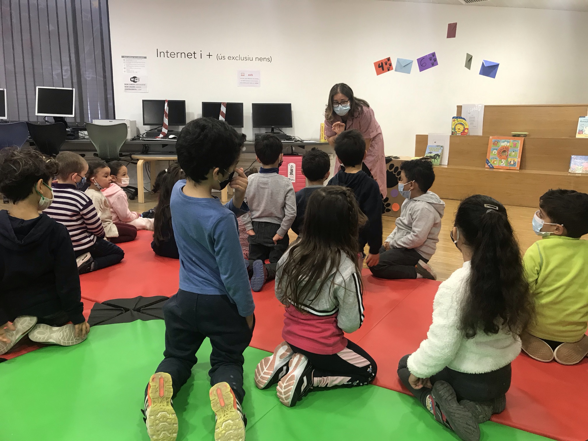 Quan vam arribar a la biblioteca, ens van explicar com hem de tractar els contes d’una manera molt divertida. Ens va agradar molt conèixer a l’elefant Titu i explicar-li el que no podia fer amb els contes!