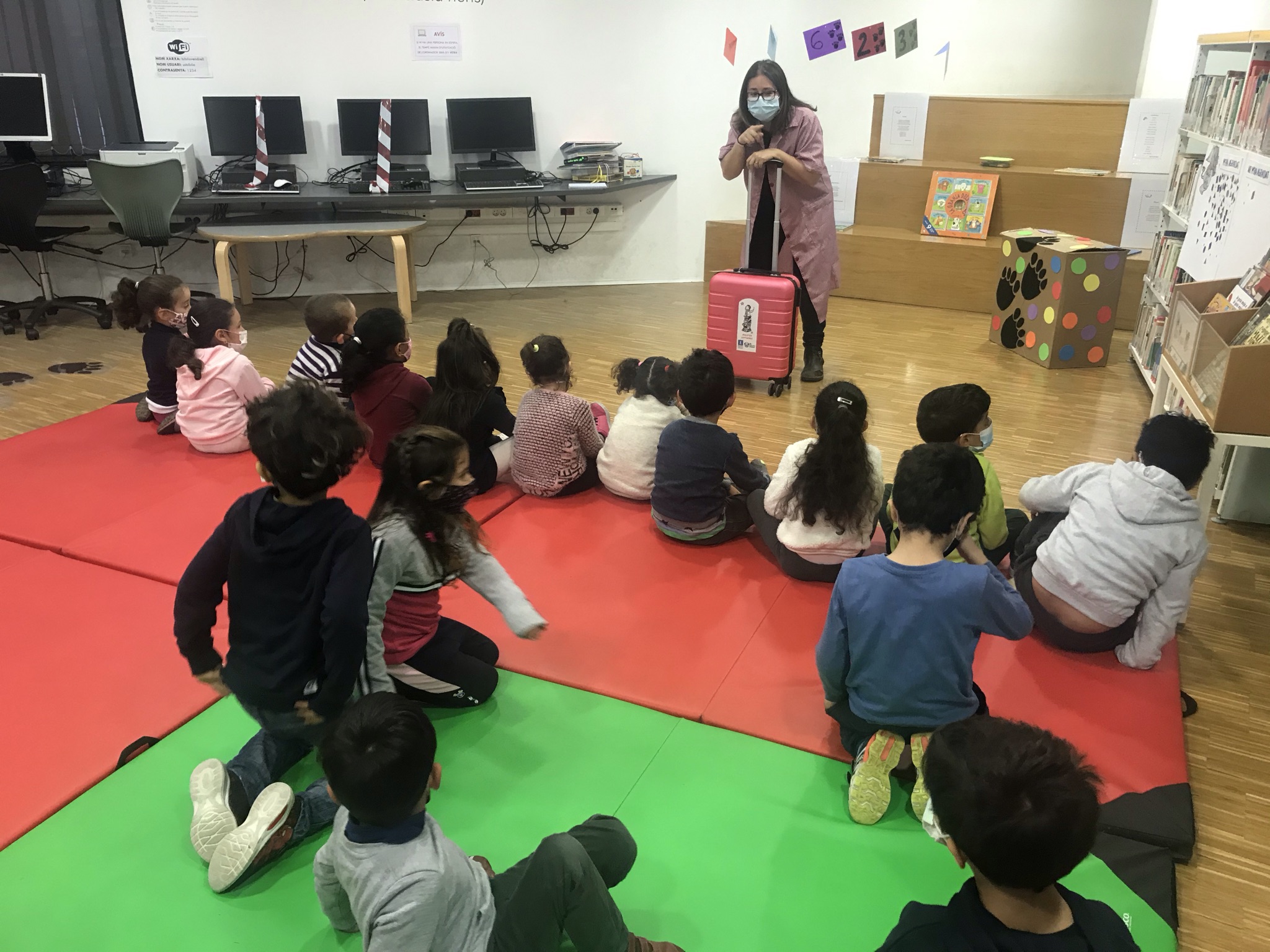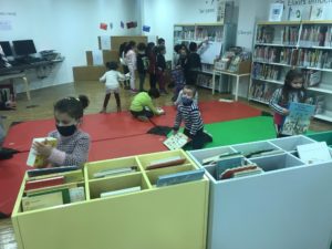 Després del joc, ens van deixar mirar contes, n’hi havia molts per escollir! Quan vam acabar, ens van donar una maleta plena de contes! Els hem anat llegint a l’escola i en vam poder escollir un per llegir-lo a casa amb les famílies!