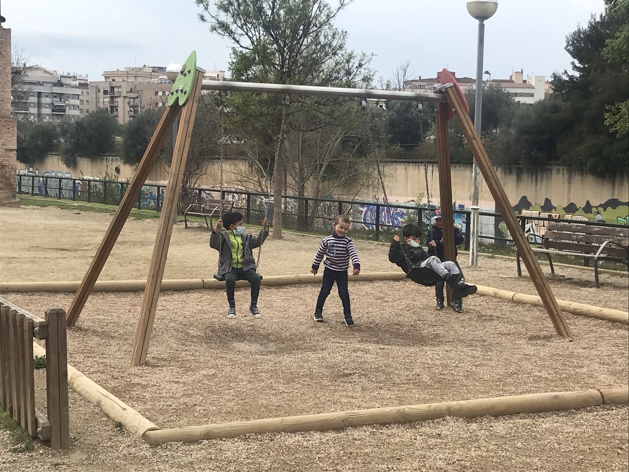 En sortir de la biblioteca, vam anar a esmorzar al parc i vam poder jugar als gronxadors!
