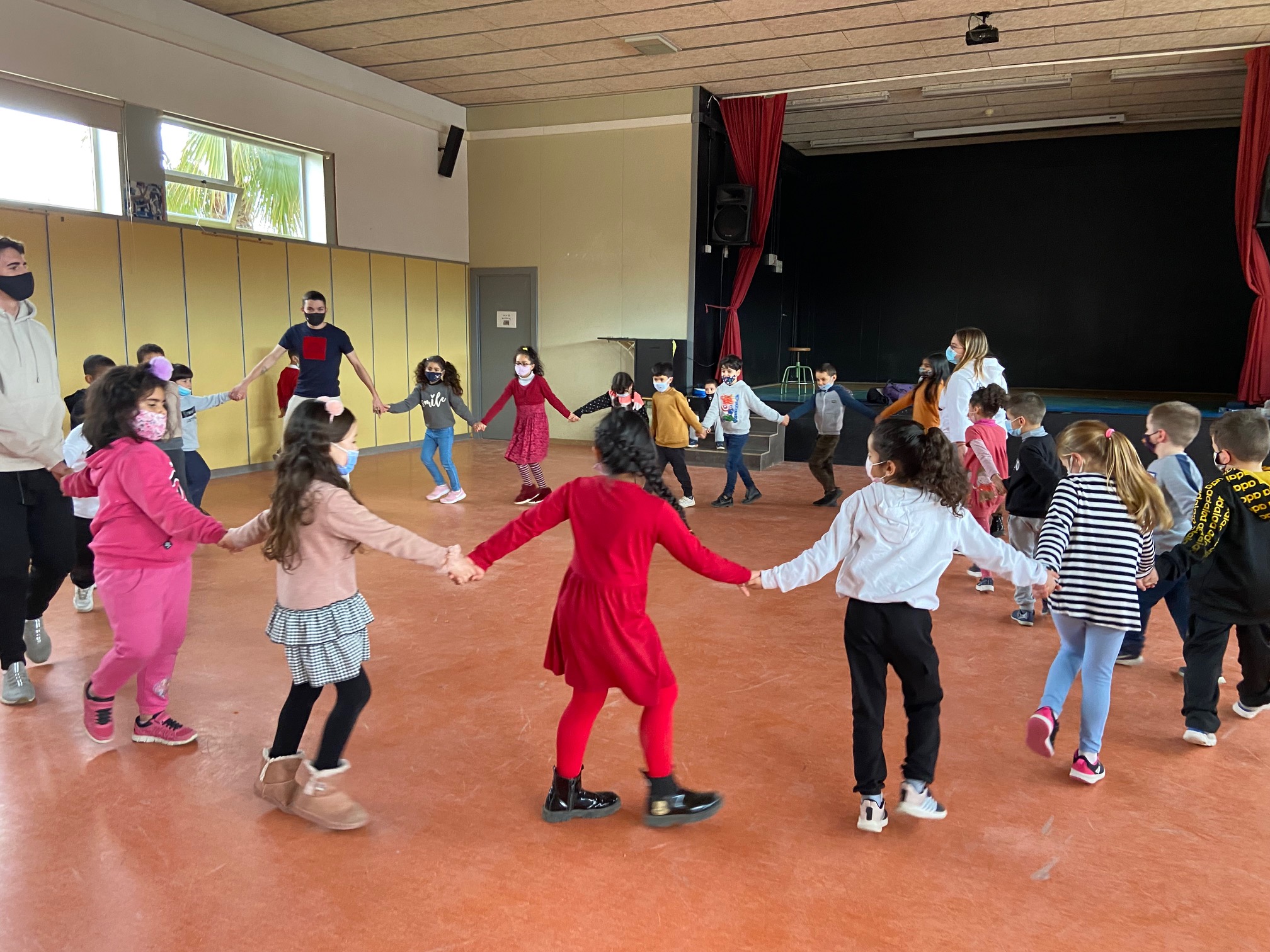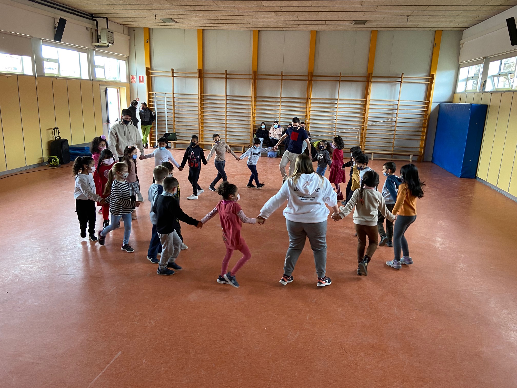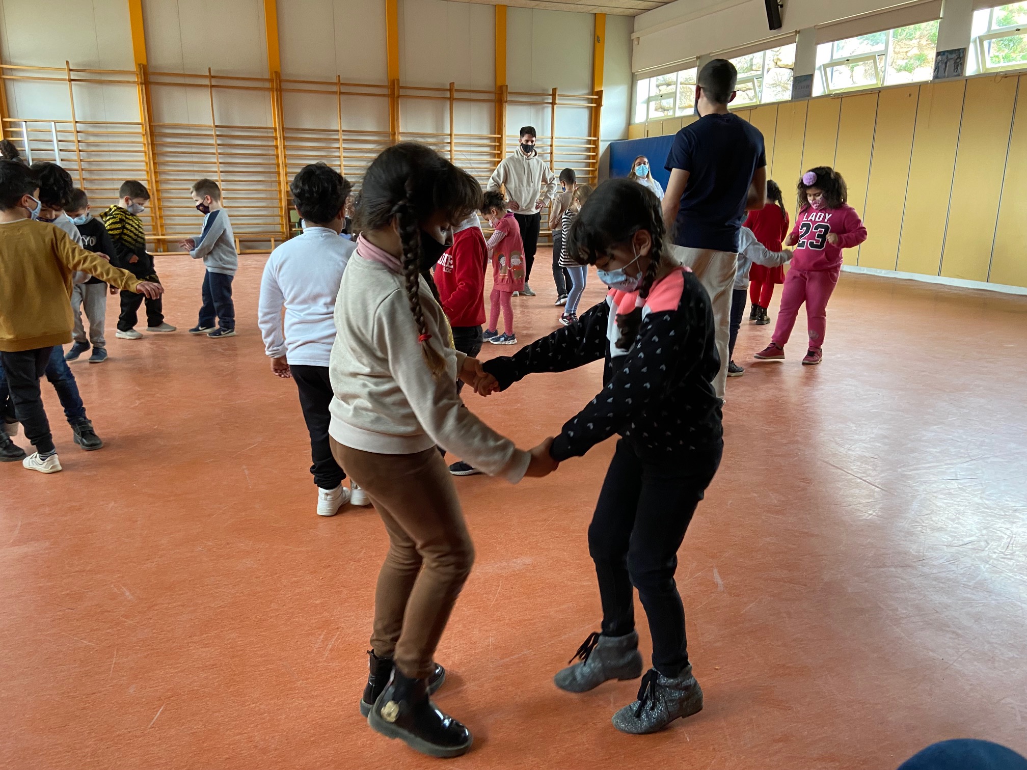 Aquesta setmana, les nenes i els nens de 1r de primària hem pogut gaudir de les danses gràcies als alumnes del CFGS d’activitat físiques de l’Institut Andreu Nin. Mitjançant les diferents propostes hem pogut treballar l’expressió corporal, la coordinació, la lateralitat… Hem gaudit de la música, dels diferents balls en parelles, en grup… ha estat una experiència molt bonica. Moltes gràcies a aquests joves estudiants que ens han fet passar una bona estona!