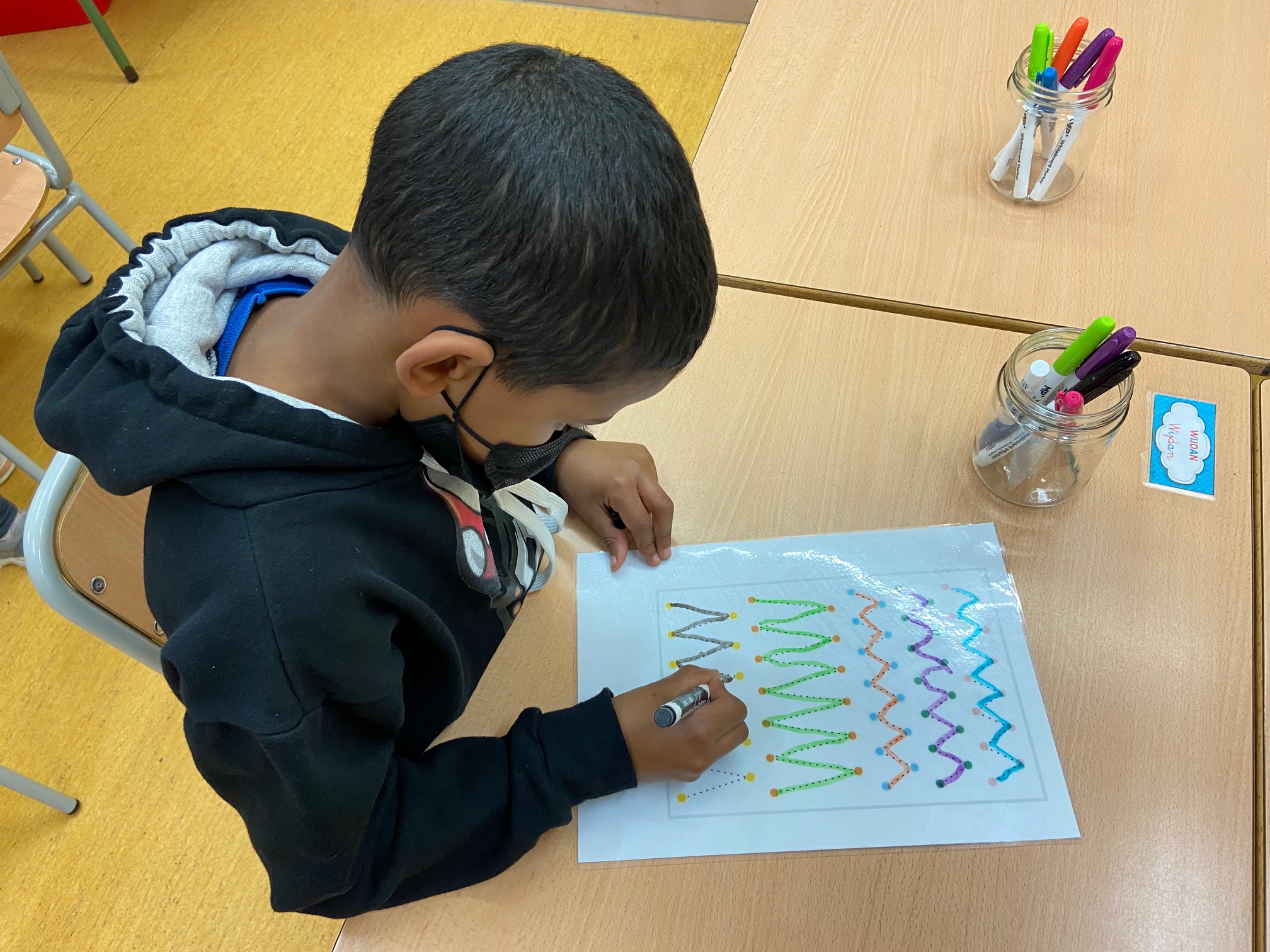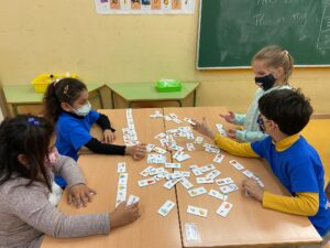 Llegir i escriure és un procés que va molt més enllà de posar signes i lletres en un paper, inclou conèixer el món que ens envolta, donar-li un significat, compartir-ho amb les companyes i els companys, amb les mestres… tot trobant sentit a l’aprenentatge. A l’aula fem jocs de llengua practicant grafismes, construint lletres amb botons, confegint paraules amb el joc de lletres, descobrint les síl·labes inicials d’una paraula, relacionant imatges i vocabulari, jugant al dòmino de les paraules… tota una sèrie d’activitats que ens ajuden a créixer com a persones.