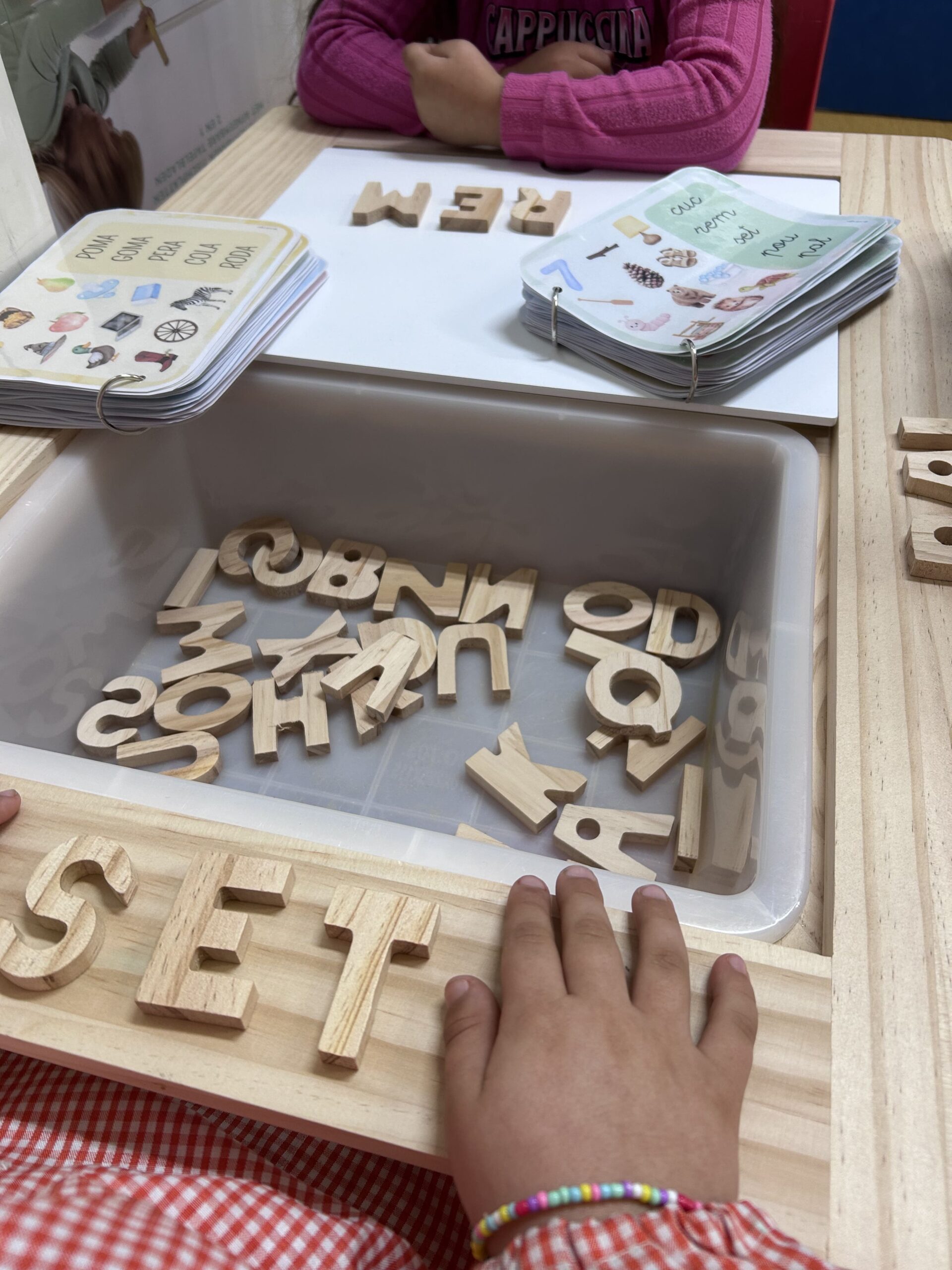 Gràcies a aquesta proposta, els infants aprenen les lletres no només amb la vista, sinó també a través del tacte i l’experimentació, fet que els ajuda a interioritzar-ne la forma i el so d’una manera més significativa i motivadora.