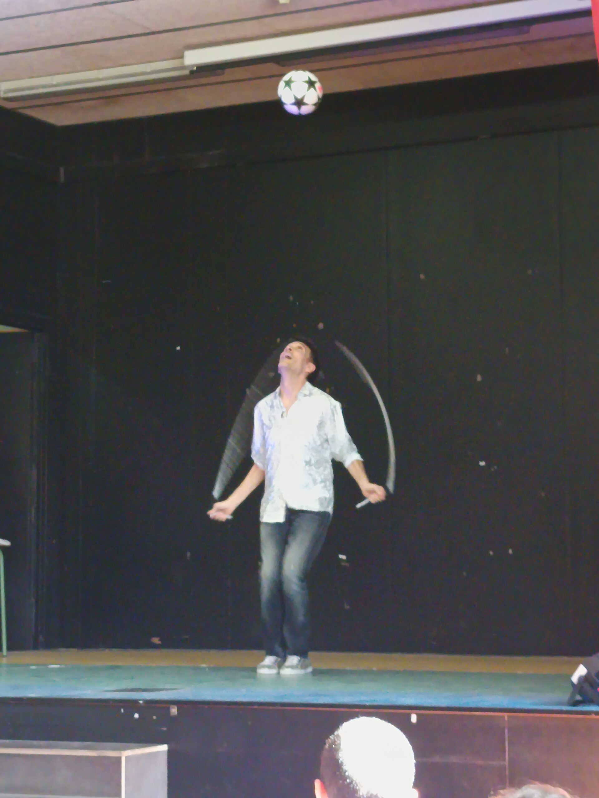 Des del primer moment, l’atmosfera del gimnàs era palpable. Amb una combinació d’habilitat, precisió i un gran sentit de l’humor, els membres de la família Ponce van demostrar per què són uns referents en el món dels malabars. Pilotes, barrets, maces i fins i tot objectes inesperats volaven per l’aire en coreografies impressionants que deixaven els assistents bocabadats.