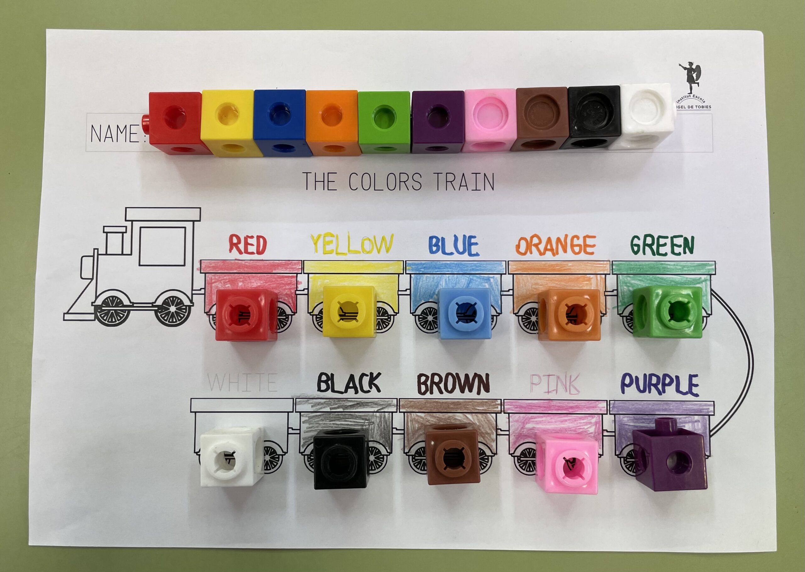 After discovering colors in English through songs, direct observation and classification of objects in our immediate environment, and manipulation through multicubes, Preschool students have checked out everything they have learnt these weeks about colors in English through the activity “The colors train”.