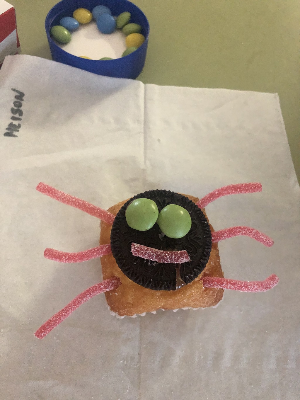 A l’àrea d’anglès, els nens i les nenes de P4 i P5 han celebrat el Halloween elaborant “spiders” cupcakes. A més a més, han après les següents parts del cos: face, eyes, nose, mouth and legs.