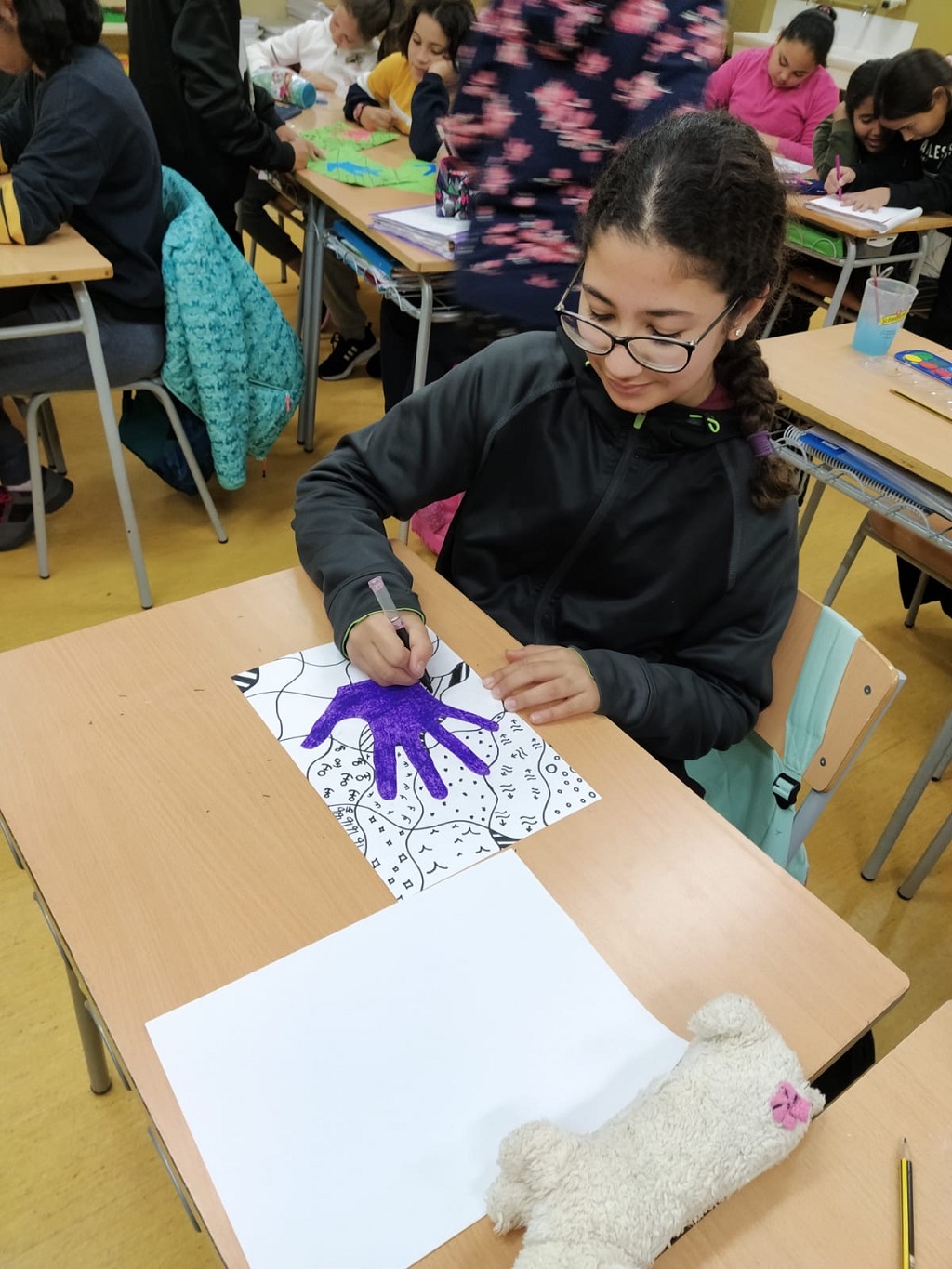 Dibuixar amb la nostra pròpia empremta, és el que hem fet els nens i nenes de 6èB com a base de la creació. Aquesta és una activitat d’art relaxant, creativa i que gaudim molt!