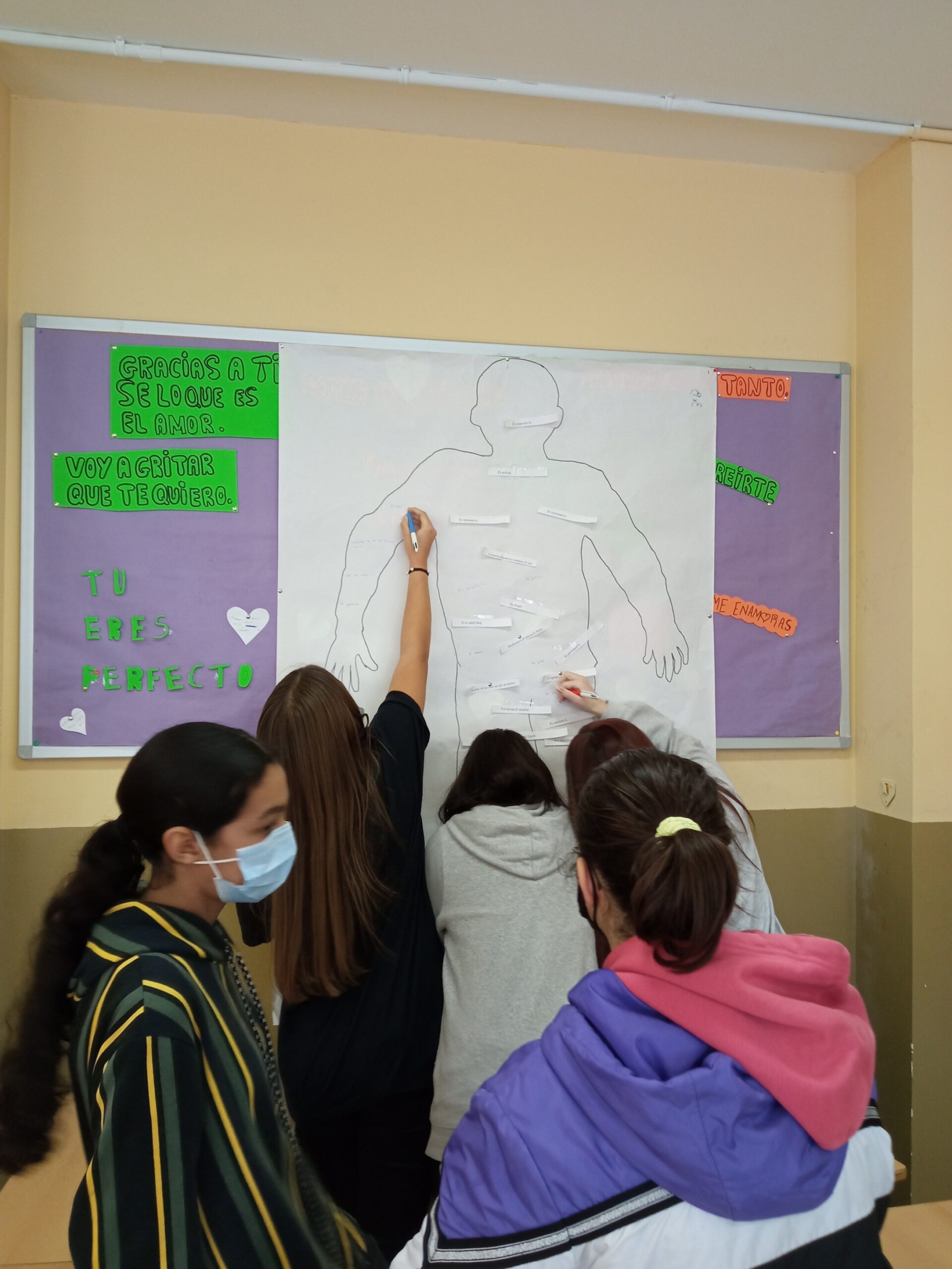 A la classe de valors de 3rESO B hem fet una dinàmica amb motiu del Dia internacional de la no-violència a la dona. La dinàmica consistia a identificar quines frases volien assignar dues siluetes dibuixades pels alumnes. El debat posterior ha sigut si calia identificar les dues siluetes com a noi o noia, o bé si tant nois i noies poden viure com desitgin.
