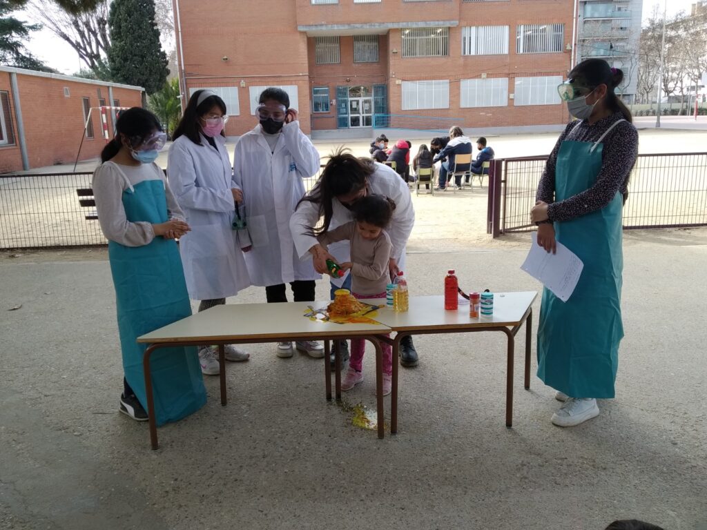Avui per celebrar el dia de la dona i la nena a la ciència hem gaudit d’un experiment a la comunitat de petits. Les científiques de la comunitat de joves ens han ensenyat a fer erupcionar un volcà.