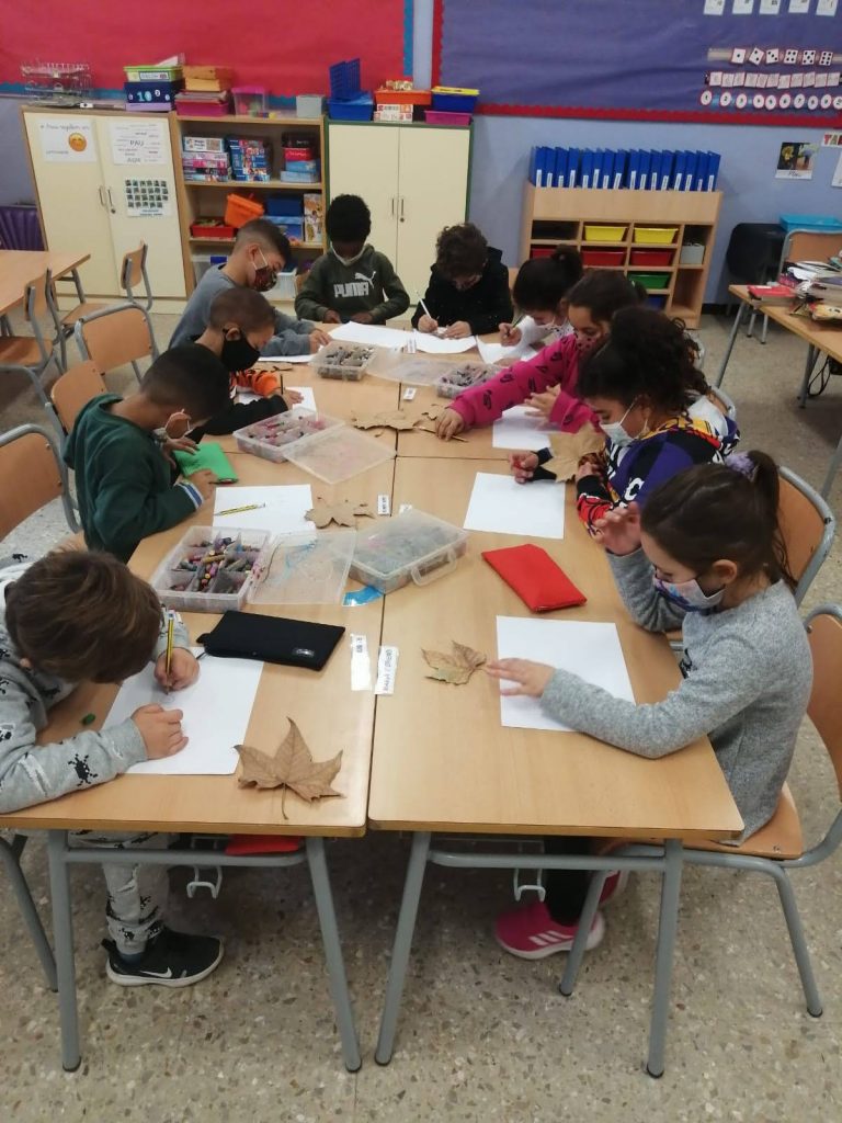 Les alumnes de 1r hem estat manipulant amb material de l’entorn. Hem aprofitat les fulles que cauen al pati per fer aquests dibuixos tan divertits!