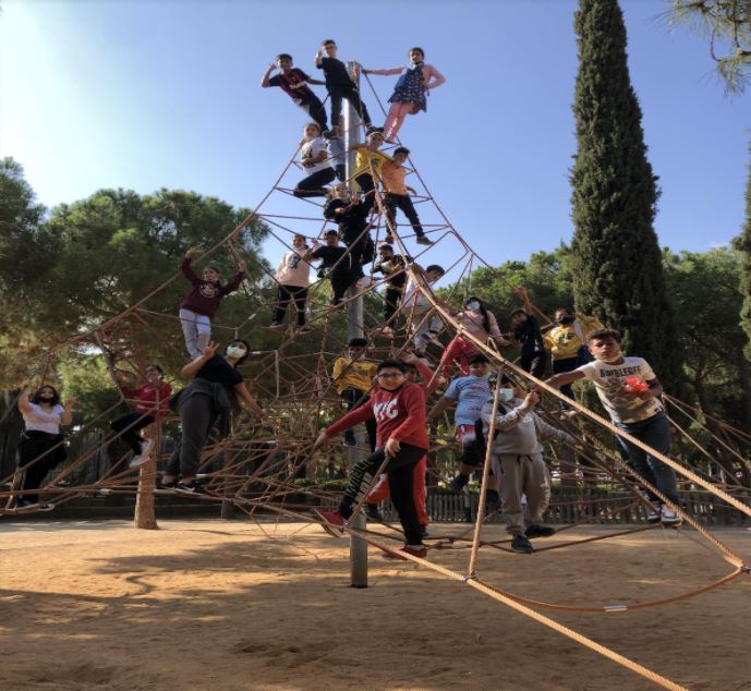 Al migdia vam aprofitar per dinar i ens vam pujar a les joguines gegants a fer-ho, però estaven brutes perquè havia plogut i estava ple de fang. A la tarda vam tornar a l’escola i estàvem tots cansats.