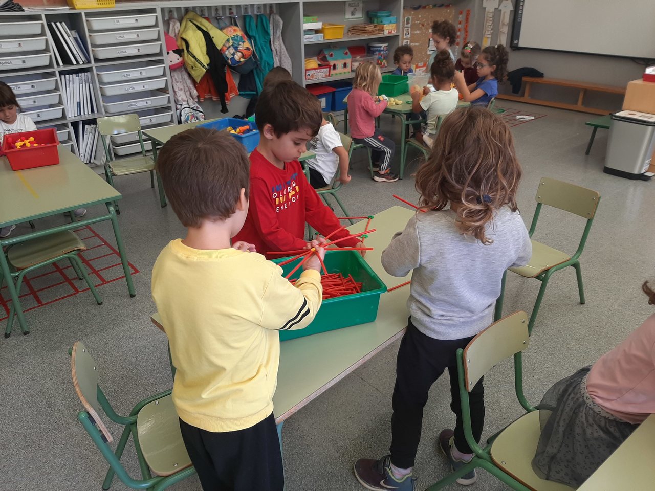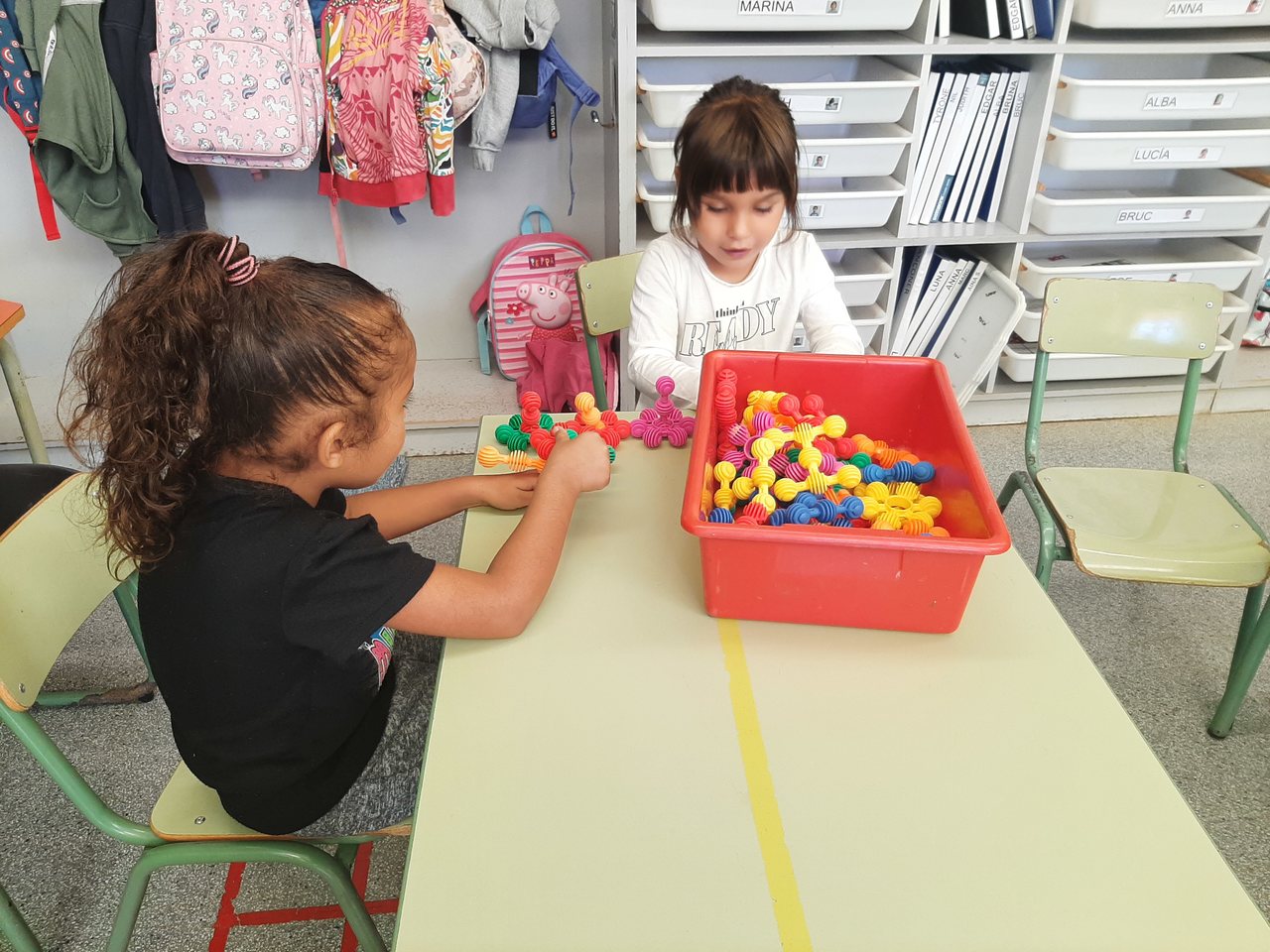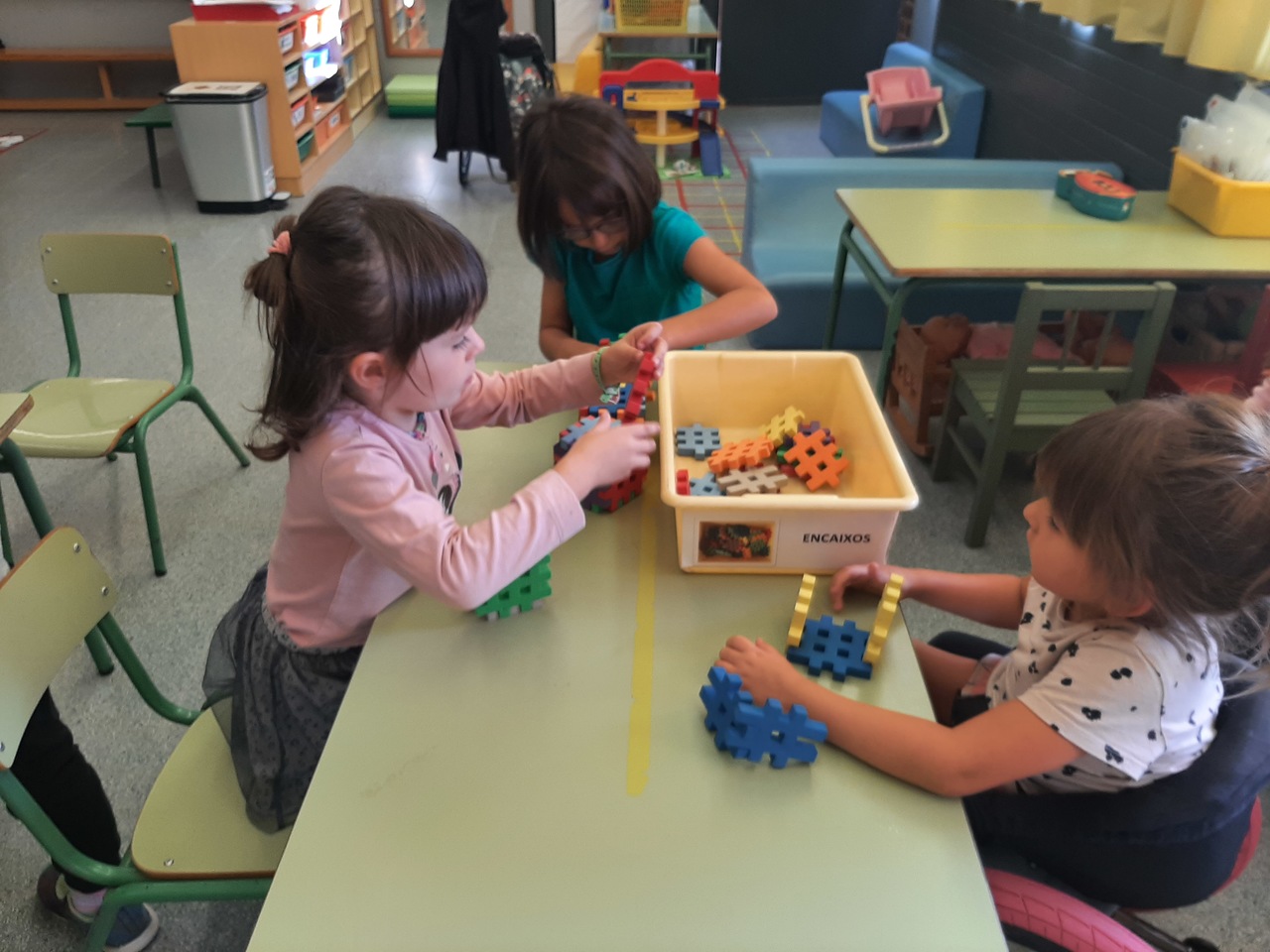 MICA EN MICA TOTS ENS ANEM ADAPTANT I DESPRÉS DE DESCOBRIR ELS NOUS COMPANYS I COMPANYES, L’ESPAI, LES JOGUINES I EL MATERIAL ARRIBA EL MOMENT PER COMENÇAR A FER TASQUES MÉS ELABORADES.