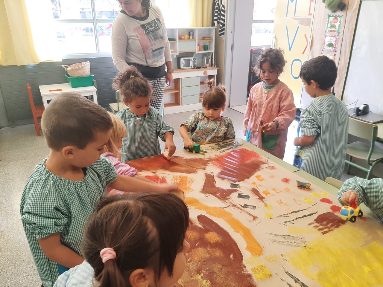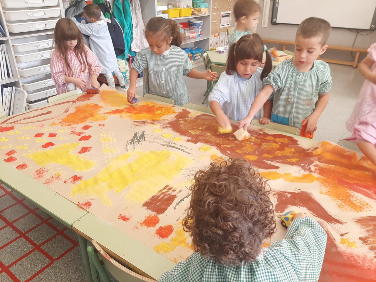 A MÉS COMENCEM A TREBALLAR LA TARDOR MALGRAT ELS DIES SIGUIN ENCARA SÓN CALUROSOS, HEM FET UN MURAL BEN BONIC AMB EL TARONJA, EL GROC, EL VERMELL I EL MARRÓ!