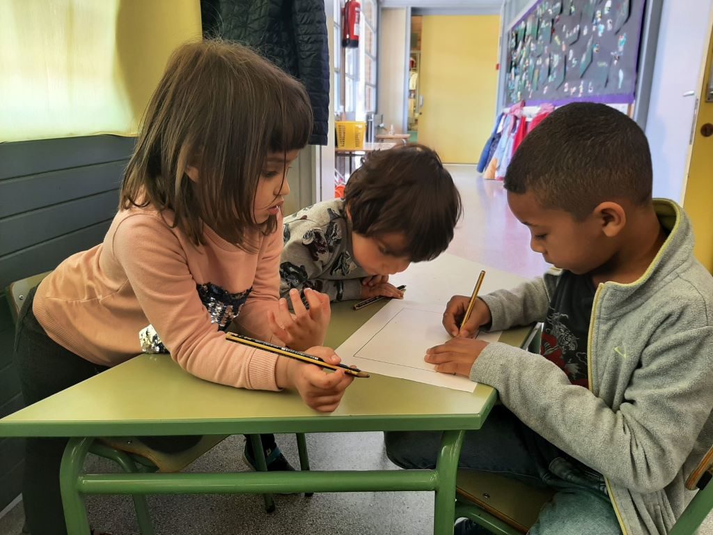Comencem els contes cooperatius. Fem grups on cadascú aporta el que millor sap fer, dibuixar, escriure, organitzar… tots aprenem de tots i compartim idees per fer una producció elaborada i amb sentit. Són uns grans escriptors i il·lustradors.