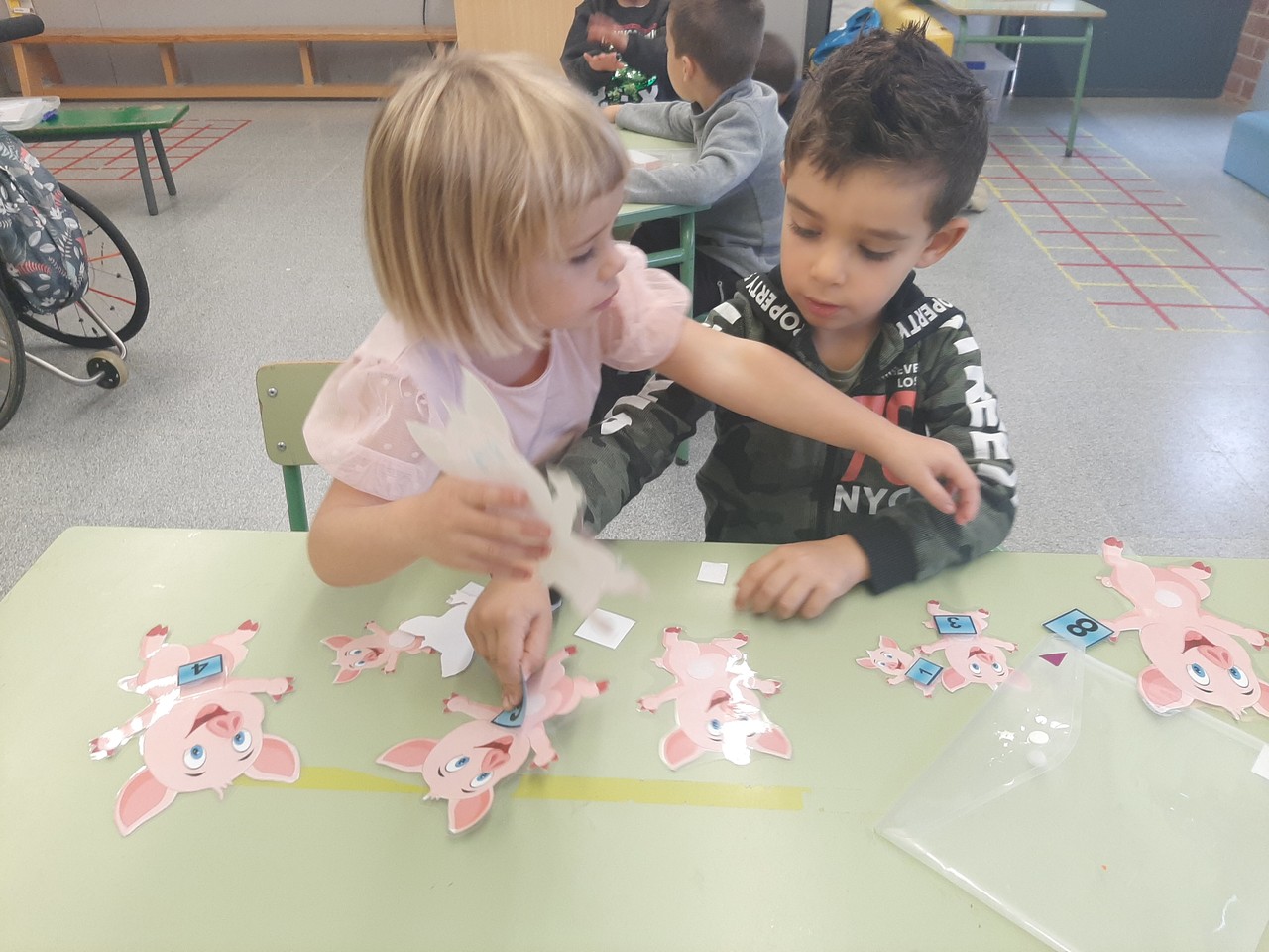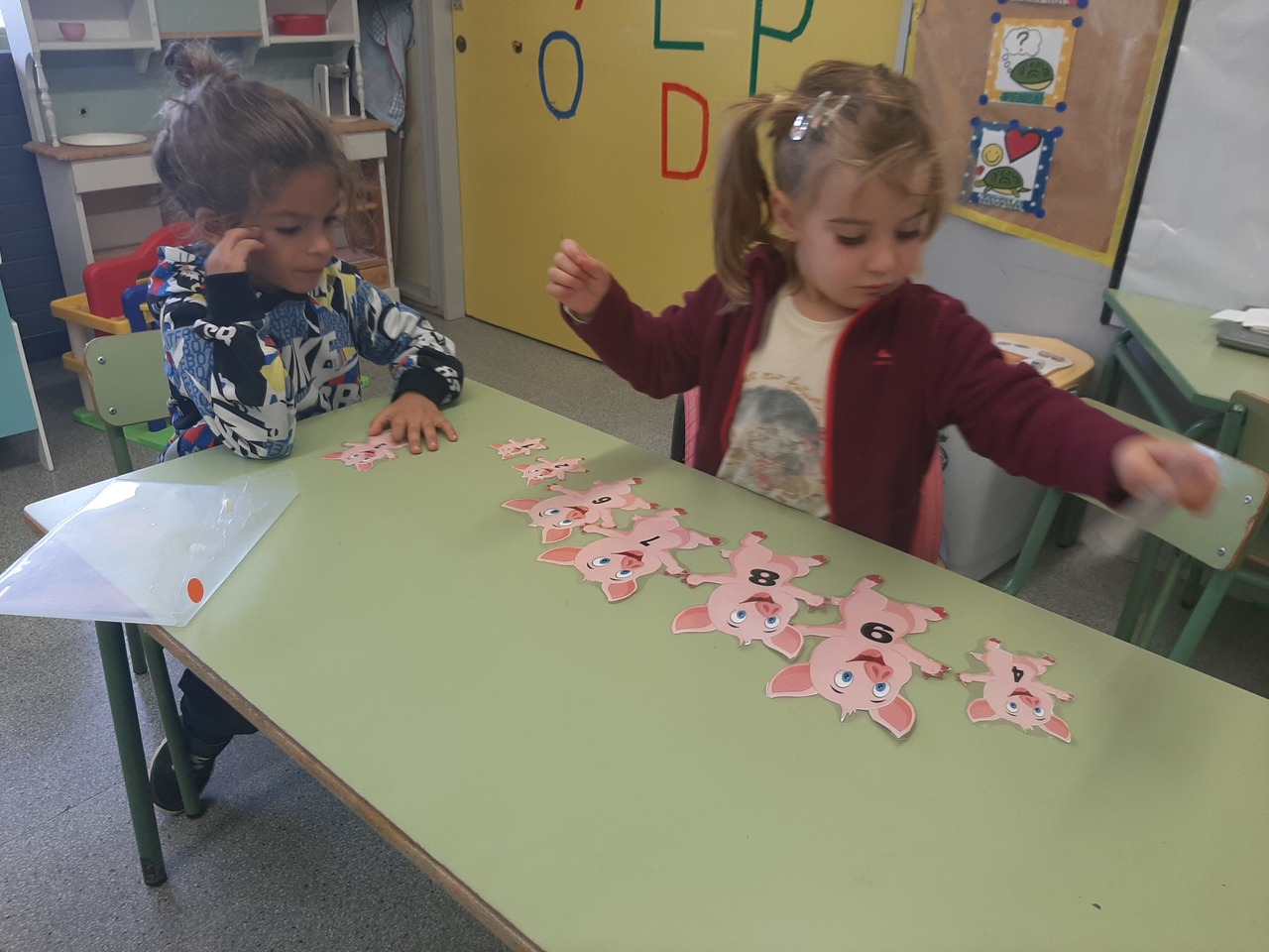 Començar els RACONS DE MATEMÀTIQUES amb el conte dels 3 PORQUETS els hi ha agradat molt. Hem pogut treballar les mesures amb el PETIT, MITJÀ I GRAN, hem ordenat de petit a gran a més de treballar la tira numèrica.