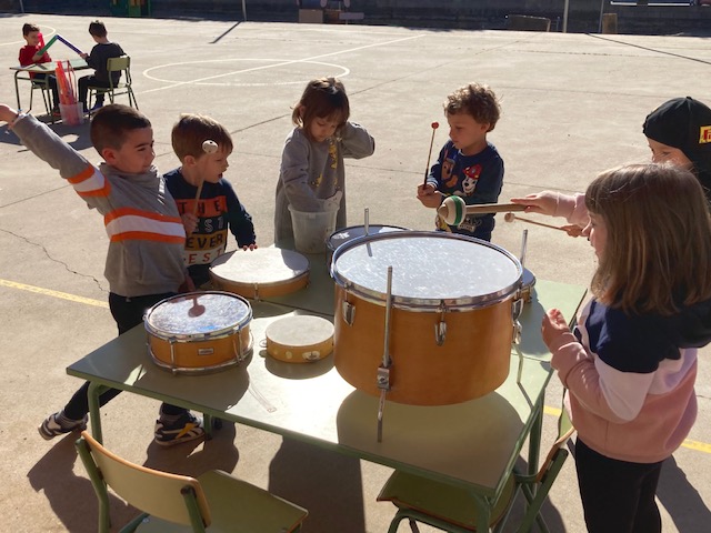Aquest dia, va ser un dia especial perquè ens van deixar tocar tots els instruments, els que volíem, quan volíem i amb la intensitat que volíem, sense rebre cap avís de pareu que feu soroll, ni res per l’estil. Era un dia totalment lliure i la veritat que fer-ho a fora al pati i de forma lliure, ens va agradar molt i esperem algun dia, poder repetir l’experiència.