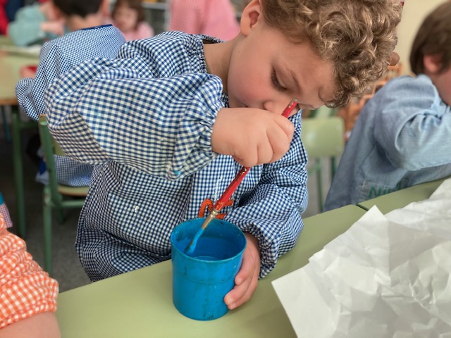 Avui hem fet una activitat súper divertida, quan estàvem a punt de pintar, la Loli ens ha dit que abans de començar arruguéssim el paper, en un principi, no gosàvem, però ens ha insistit i si, si, dit i fet. Ha sigut molt divertit i després de fer-ho unes quantes vegades el resultat final, ha estat molt xuli. Ja veureu……