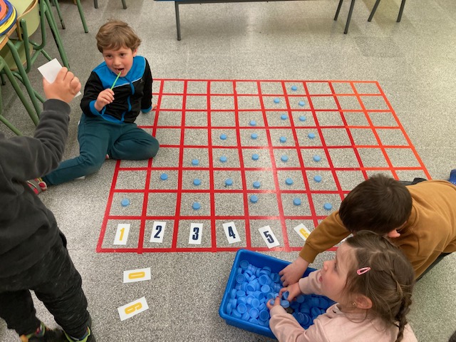 Aquesta setmana hem fet la gran majoria de jocs matemàtics al terra, hem treballat la quantitat, les seriacions i fins i tots conceptes d’espai. La veritat és que ens ho hem passat molt bé i no ha estat tant difícil com semblava.