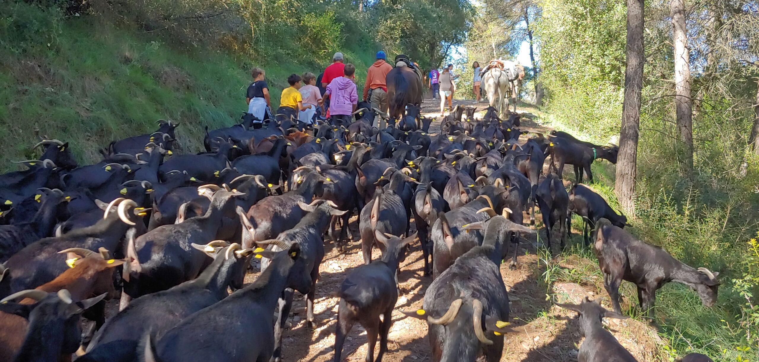 Una altra de les activitats que vam fer l’alumnat de 6è va ser acomiadar el ramat. Primer, vam anar a veure com el pastor les munyia abans de marxar: els esperaven 20km de camí! A continuació, els pastors, gent del poble i nosaltres vam acompanyar al ramat caminant un tros del camí vell de la Rovirassa. Hi havia 148 cabres i n’hi havia de totes mides i colors, eren molt boniques! A més, també les acompanyaven un cavall i dos ases.
