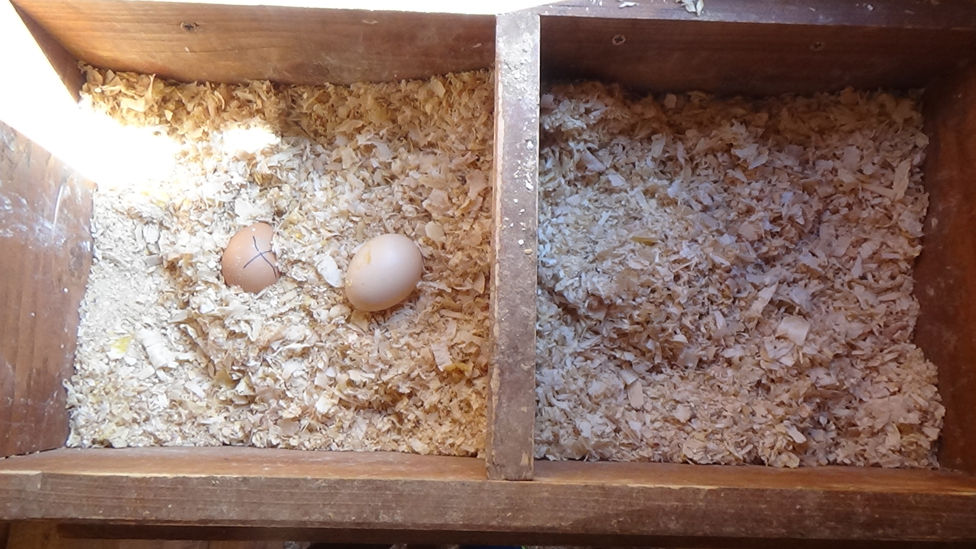 Fins ara les gallines eren massa joves i no podien fecundar-los, però aquest dilluns quan vam tornar del cap de setmana ja hi havien sis ous al galliner.