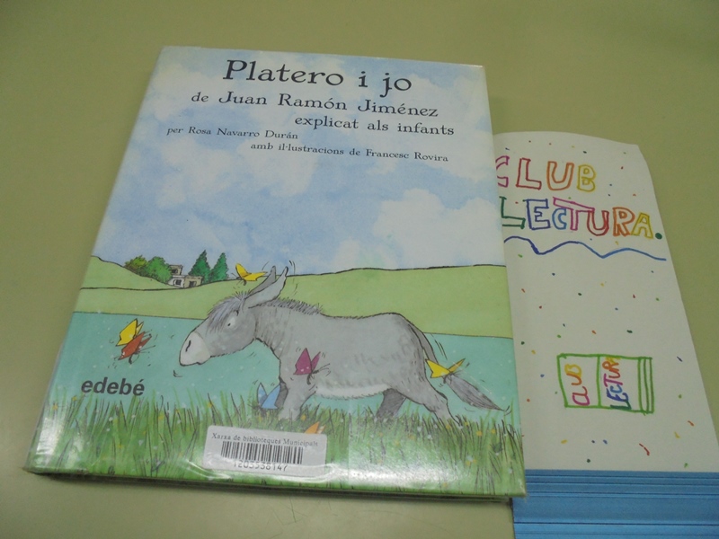 El club de lectura consisteix en que anem a la biblioteca els dimecres cada 15 dies. Allà ens donen un llibre de literatura universal però adaptat per nens. Després ens diuen fins a una pàgina que ens hem de llegir i ens l’emportem a casa fins el dia següent. I quan anem a la biblioteca en parlem. El llibre que estem llegint és “platero i jo”.
