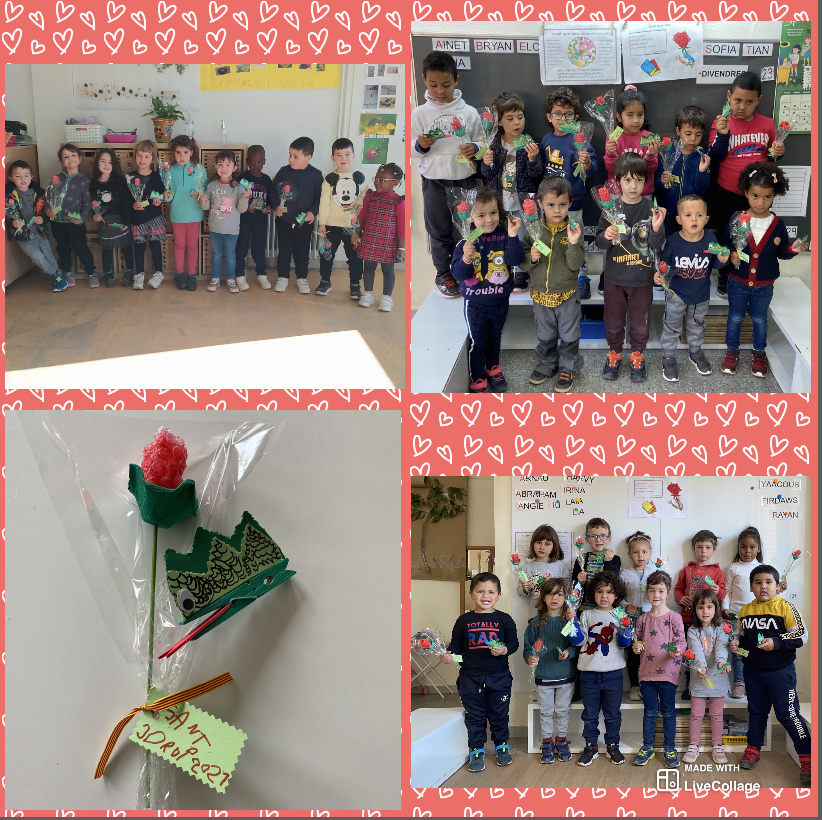 Al llarg d’aquesta setmana, els nens i nenes de la classe verda, blava i vermella, hem realitzat diferents activitats relacionades amb Sant Jordi: contes de la llegenda i de la celebració de la Diada,  cançó i poema de Sant Jordi, mandales, manualitat rosa i drac…