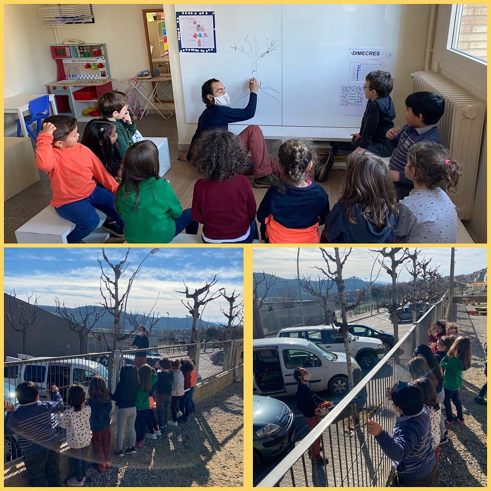 Des del primer trimestre, els nens i nenes de la classe blava portem a terme el projecte “per què cauen les fulles?”. A part d’investigar aquest fet, aquest projecte ens ha portat a observar els arbres. Després que alguns arbres hagin perdut totes les seves fulles, hem vist que els hi han tallat algunes branques i ens hem preguntat per què ho fan?