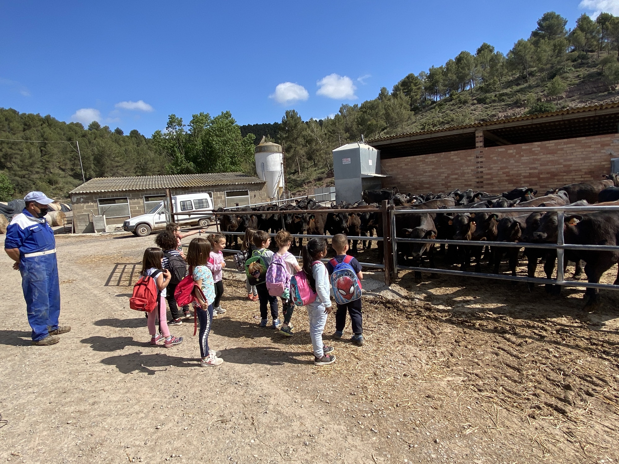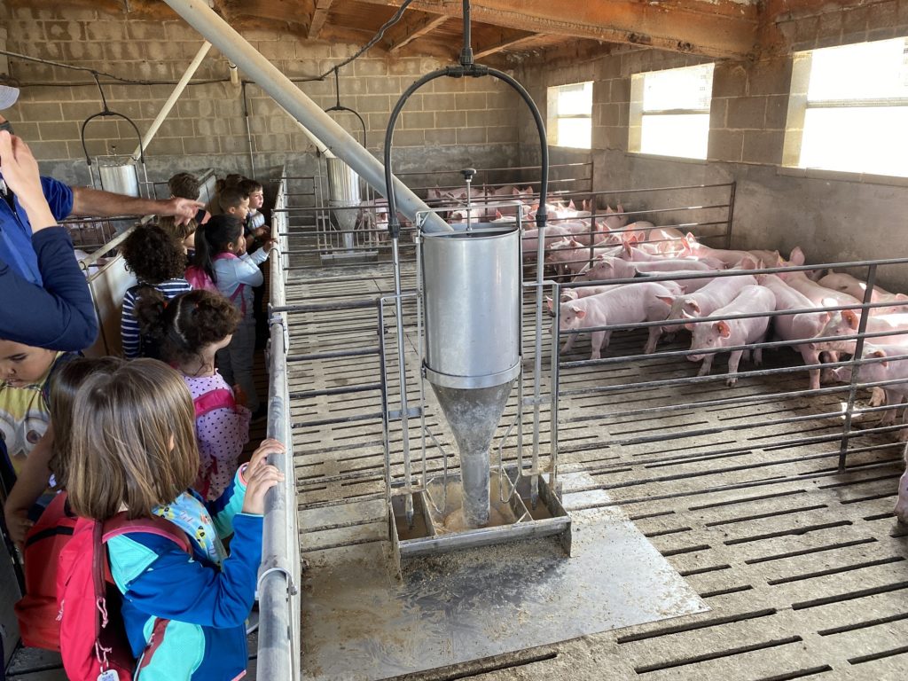 Els nens i nenes de la classe blava, aquest dilluns passat vam anar esmorzar a la plaça Dalí. Després, vam anar a visitar la “Granja Corominas” on vam poder veure porcs i vedells. Vam estar ben enfeinats donant-los palla per menjar. Ens va agradar molt veure-la perquè la Laia Corominas, sempre explica anècdotes de la granja.