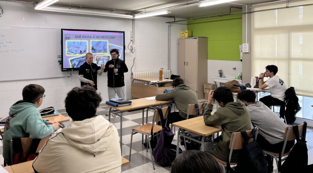L’Arnau i en Carlos ens van explicar que amb l’oli usat que reciclem es produeix biodiesel i combustible per avions. Actualment, el 17% del combustible està constituït per l’oli usat reciclat amb la consegüent reducció de combustibles fòssils.