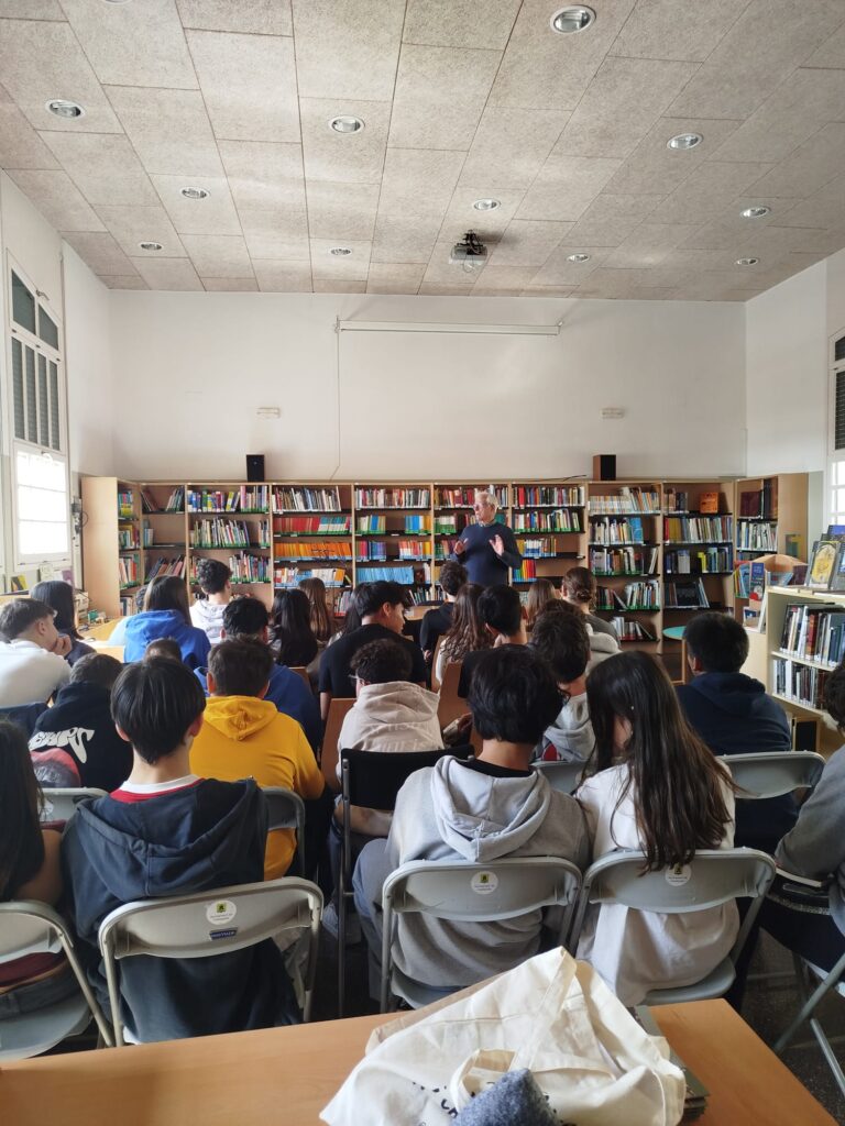 L’alumnat, que havia llegit prèviament la novel·la, va aprofitar l’oportunitat per plantejar preguntes a l’escriptor sobre l’obra i sobre el seu procés creatiu. La trobada va ser molt enriquidora i va generar un interessant intercanvi d’idees entre l’autor i els estudiants.
