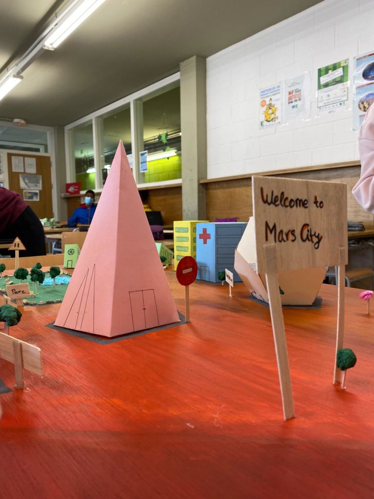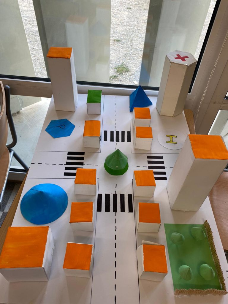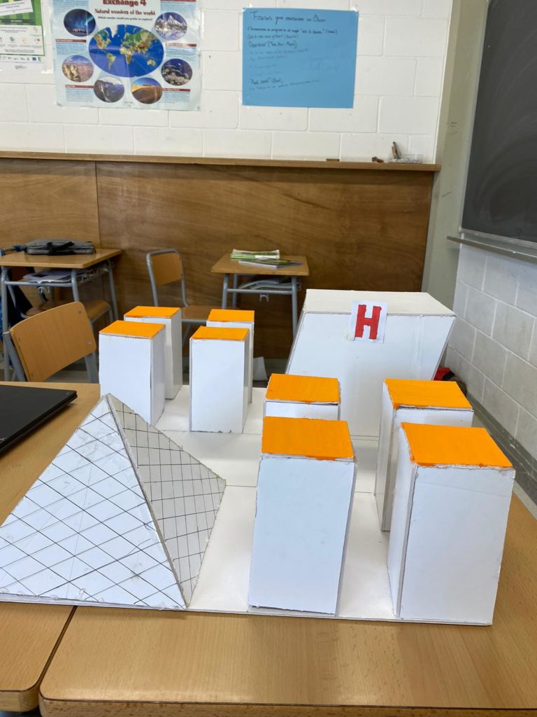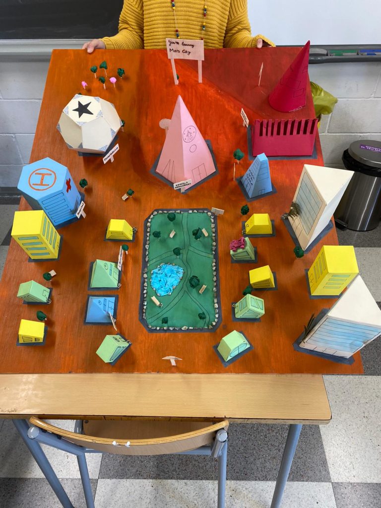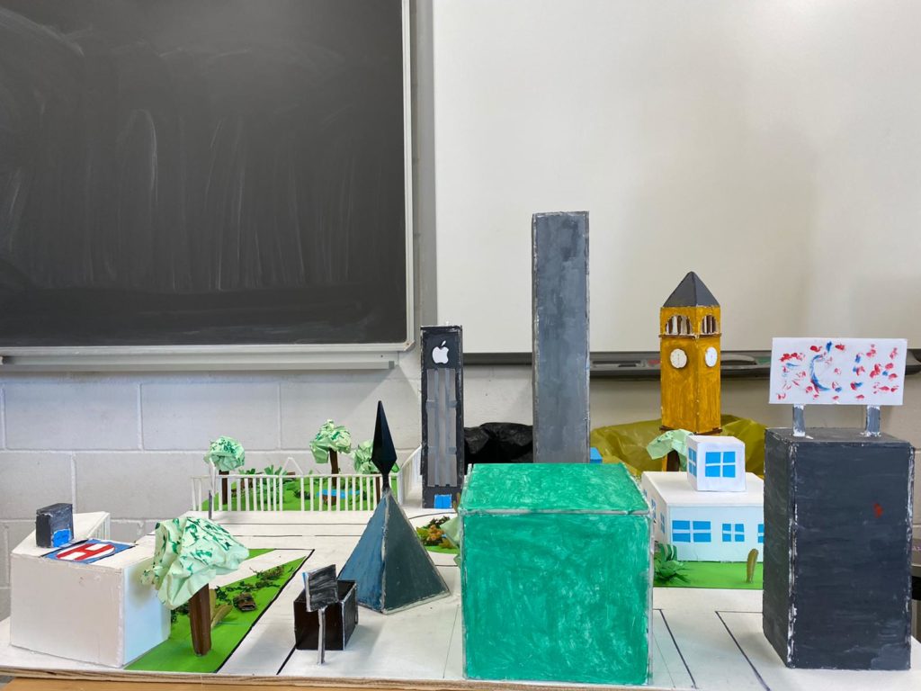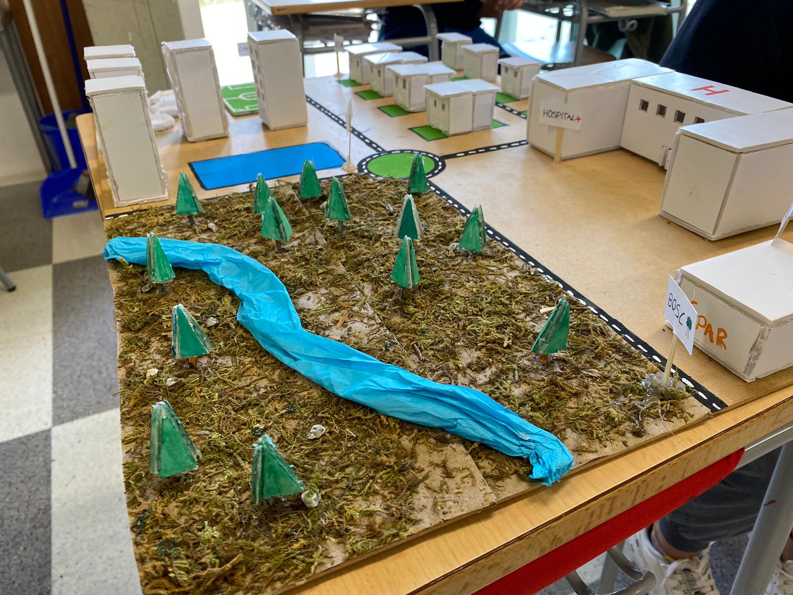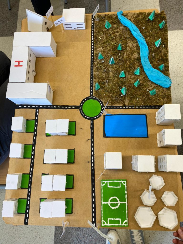 Els alumnes de matemàtiques de 3r d’ESO per treballar els cossos geomètrics van construir unes maquetes simulant una ciutat de caire futurista on hi havien de constar els diferents cossos geomètrics de la unicat en forma d’edifici. Per exemple, l’hospital podia ser una piràmide o l’escola ser un cilindre.