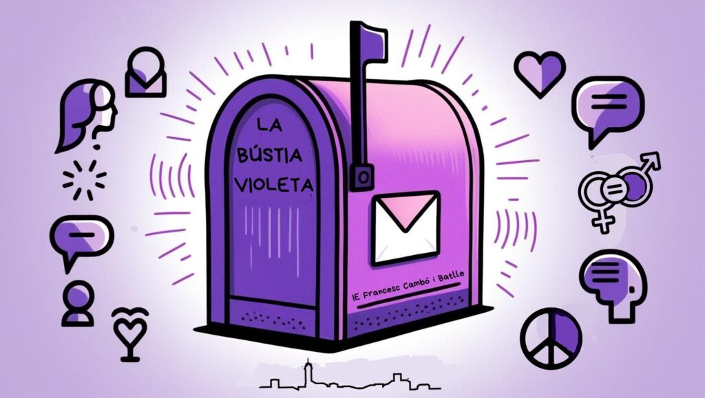 La Bústia Violeta és un nou espai digital creat per donar veu, de forma totalment anònima, a totes les persones del nostre institut que necessitin demanar ajuda, compartir experiències, comunicar inquietuds o situacions de discriminació, desigualtat o violència sobre temes de gènere, sexualitat, raça, entre d’altres.