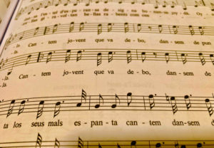 “[…] Cantem, jovent, que va de bo, dansem de punta i de taló; qui canta los seus mals espanta…”.