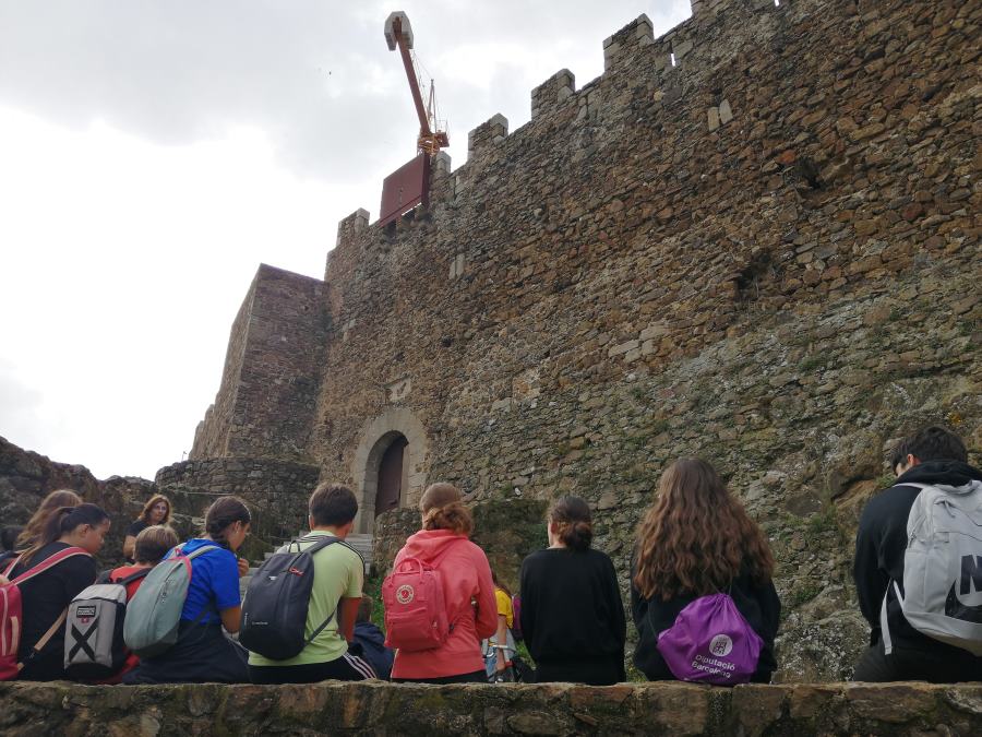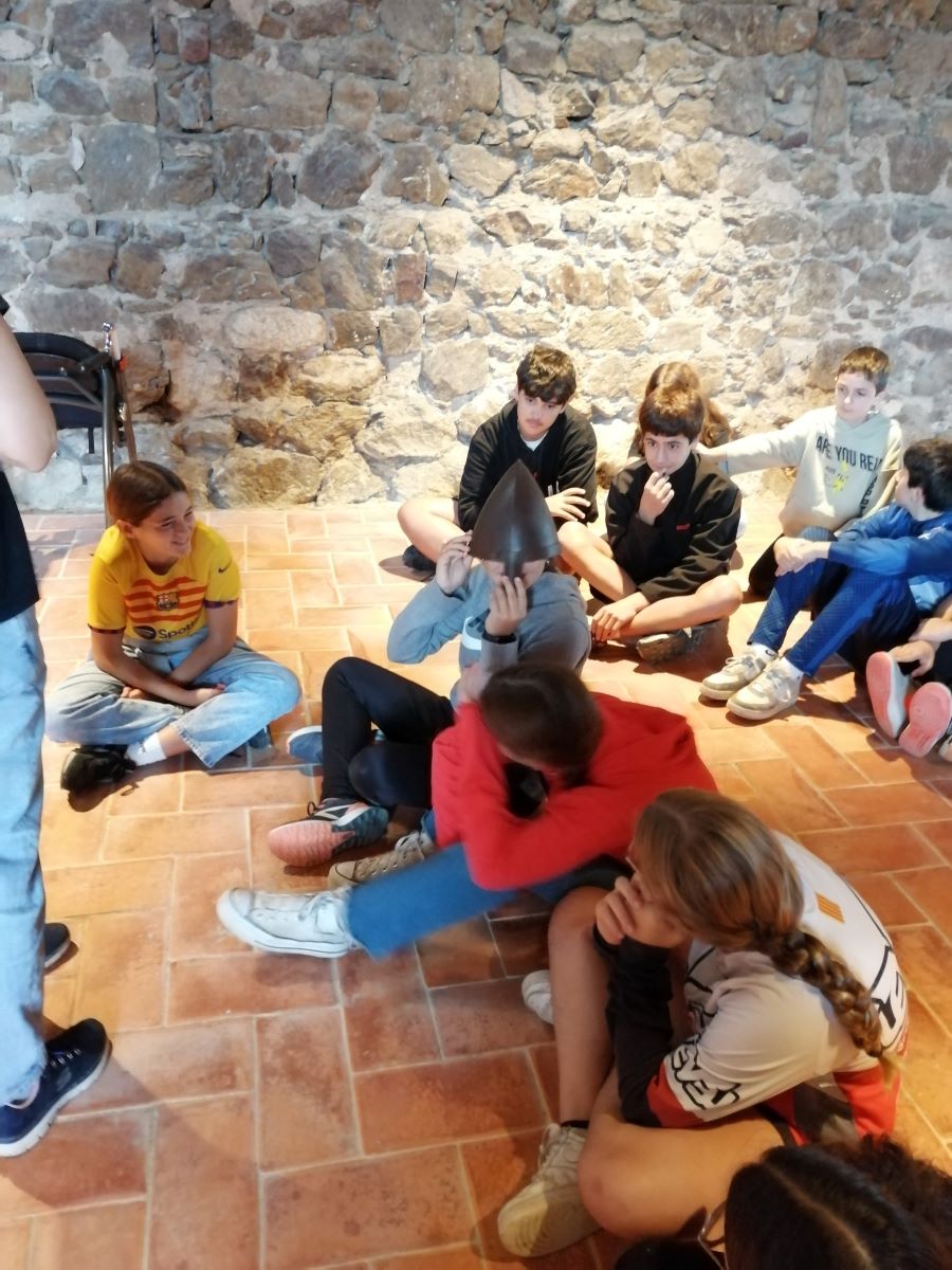 Després d’una caminada enèrgica i entusiasta, els alumnes van arribar al castell on van viure en directe la seva majestuositat. Van aprendre les estratègies defensives (orientació de portes i muralles, merlets, espitlleres, pas de ronda, matacans,etc.), i les diferents parts del castell com ara la cuina, sala de recepcions, torre de l’homenatge, pati d’armes, cisterna d’aigua. Fins i tot, van poder tocar part l’arnès del cavaller com l’espasa, la ballesta, el casc i la cota de malla.