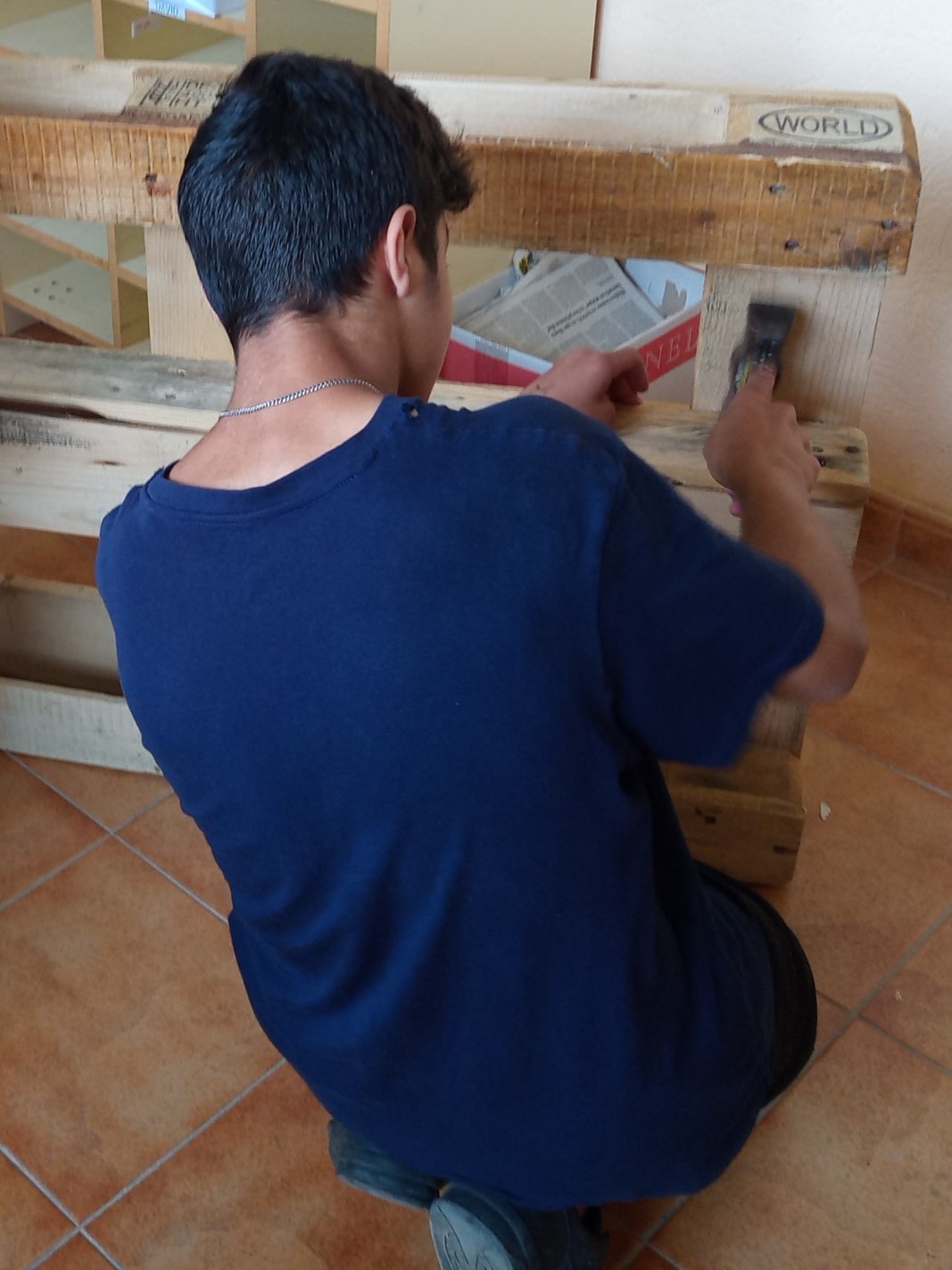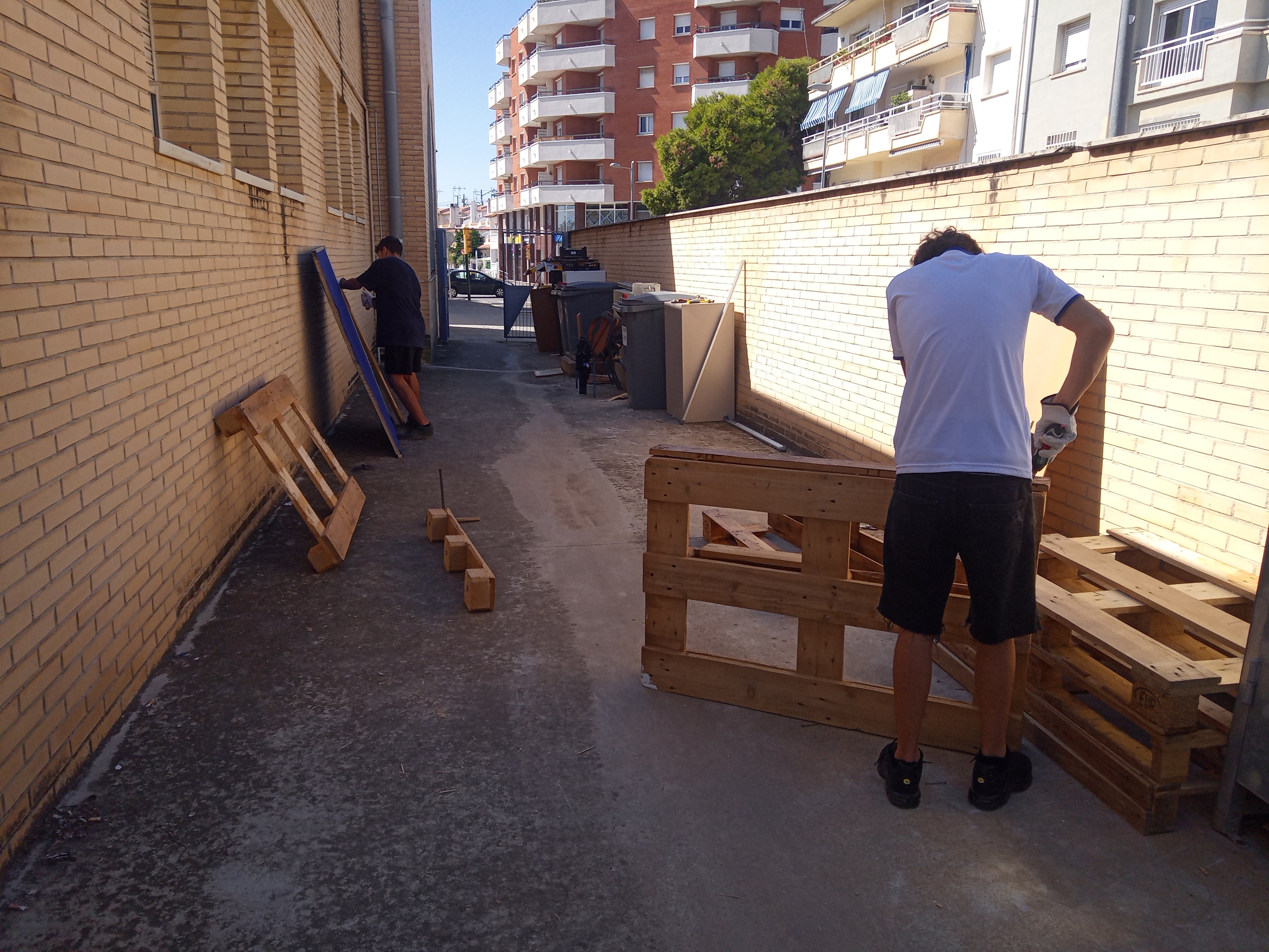 banda, està el treball a l’institut, el qual consisteix en la construcció d’un hort vertical amb palets, projecte