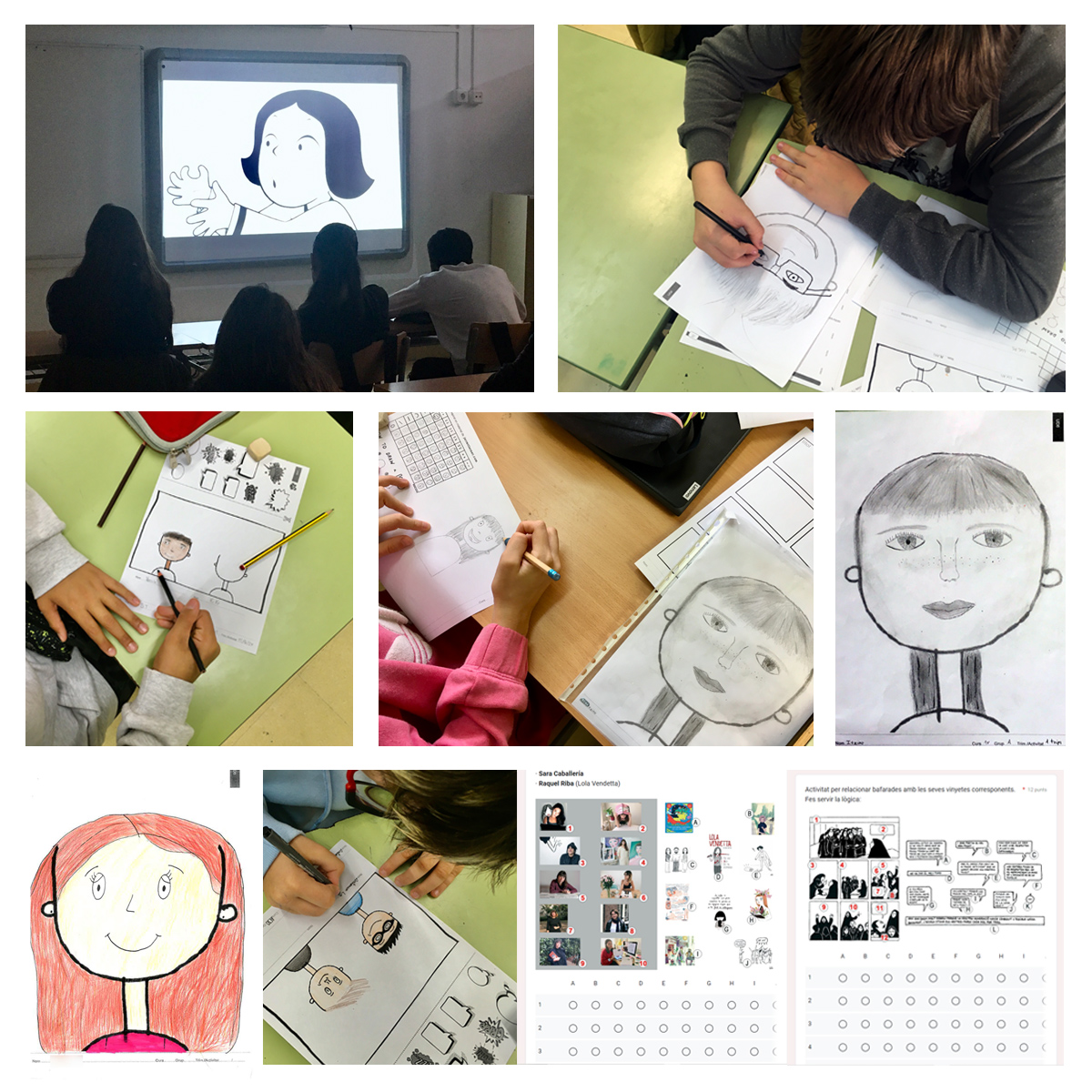 Hem compost amb els elements essencials del còmic com ara les bafarades, les onomatopeies, les vinyetes, hem dissenyat personatges, ens hem fet un autoretrat (de cara i de cos sencer)… i hem culminat amb la creació d’una historieta de còmic pròpia i original.