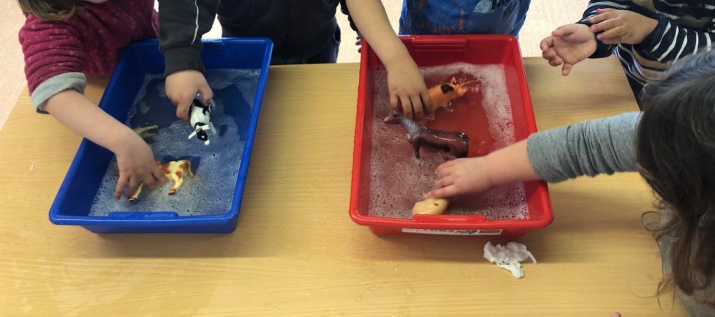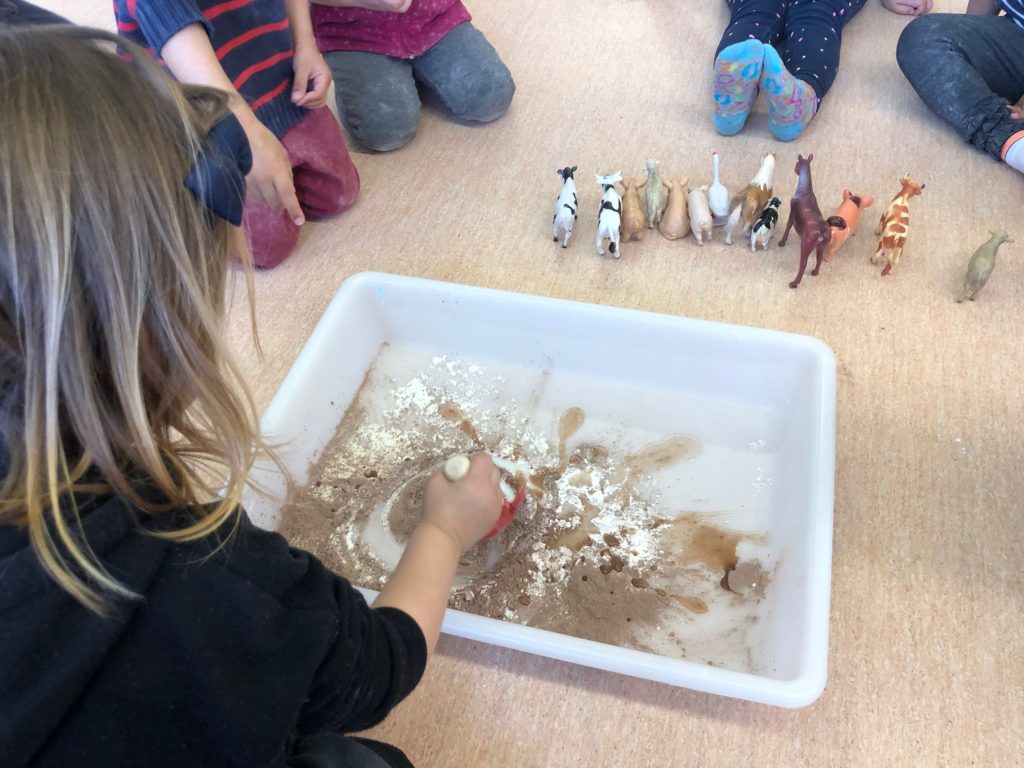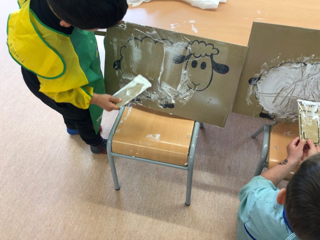 També hem xerrat i experimentat sobre què obtenim de cada animal. Els nens i nenes tenen clar que la llet ve de la vaca i els ous de les gallines, però també xerrem de la carn, la pell i la llana com a elements més importants que ens aporten.